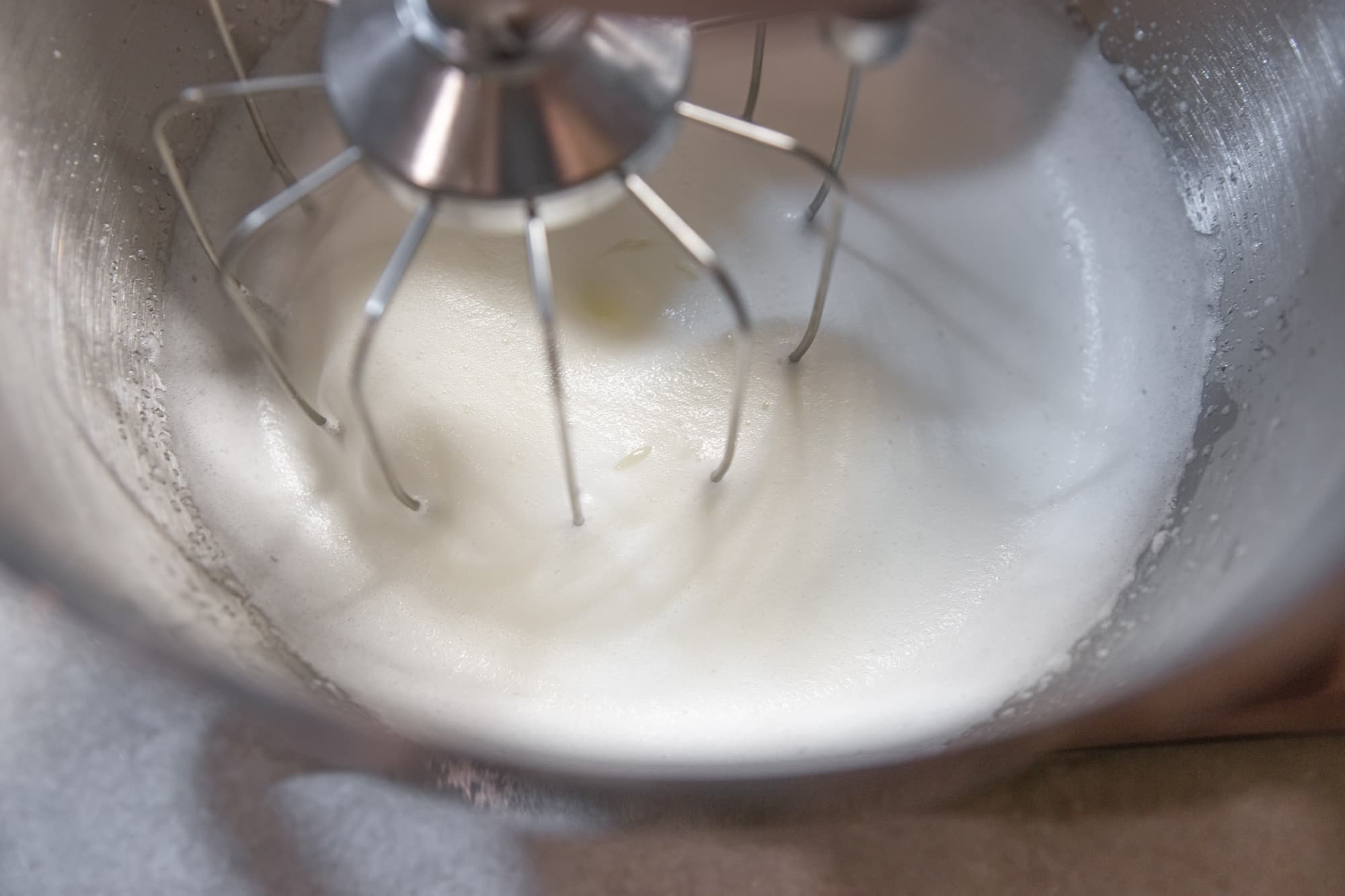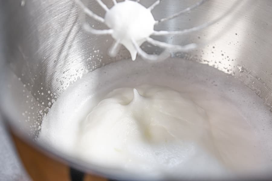 Плавно, но быстро перевели миксер в максимальный скоростной режим. И уже через минуту белки стали превращаться в пышную пену.