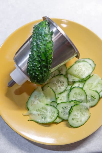 При шинковке на огурец длиной 10 см прибор потратил около 20 секунд. За ножом осталась одна неперемолотая шкурка.
