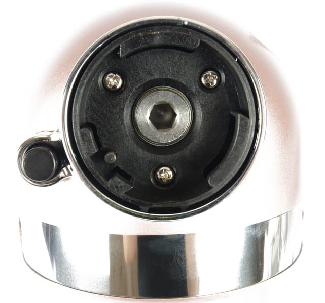При переведении рычага фиксации в крайнее левое положение, подвижная часть миксера вручную, плавно отодвигается вверх и открывает доступ к шпинделям для насадок.