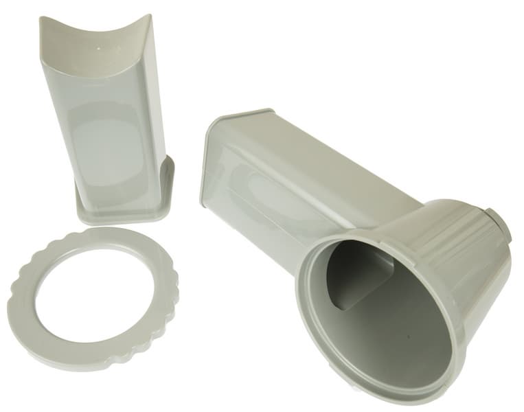 Толкатель, загрузочный блок и кольцевая гайка терки — пластиковые.