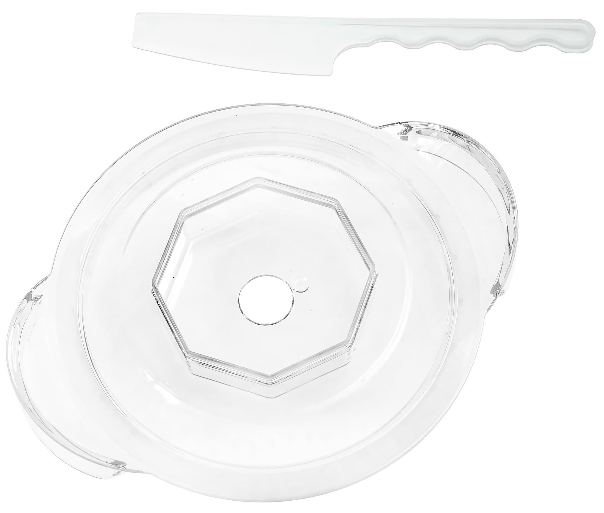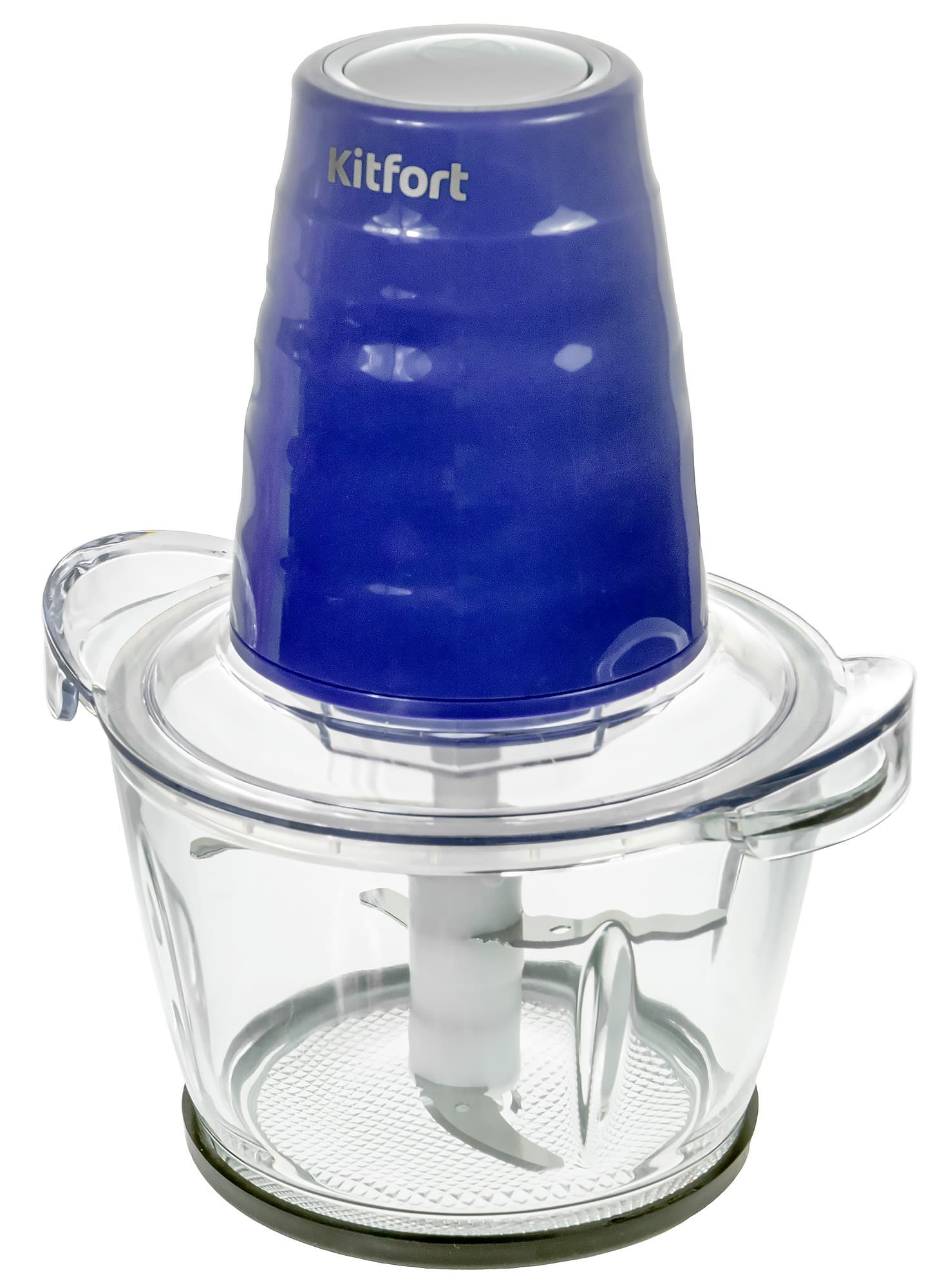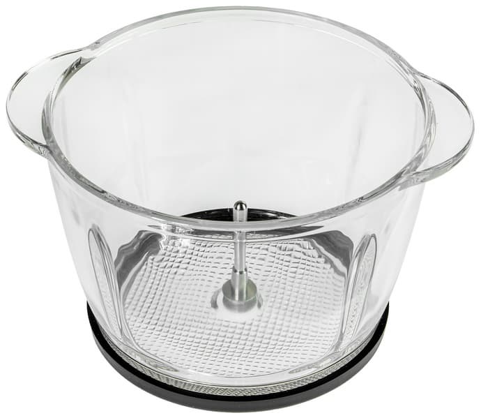 Чаша изготовлена из толстого прозрачного стекла. В центре возвышается 5-сантиметровый шпиндель, на который надевается нож. Дно чаши с внешней стороны рифленое. Для предотвращения скольжения и снижения шума к KT-3017-1 прилагается резиновое кольцо — его нужно положить под чашу.