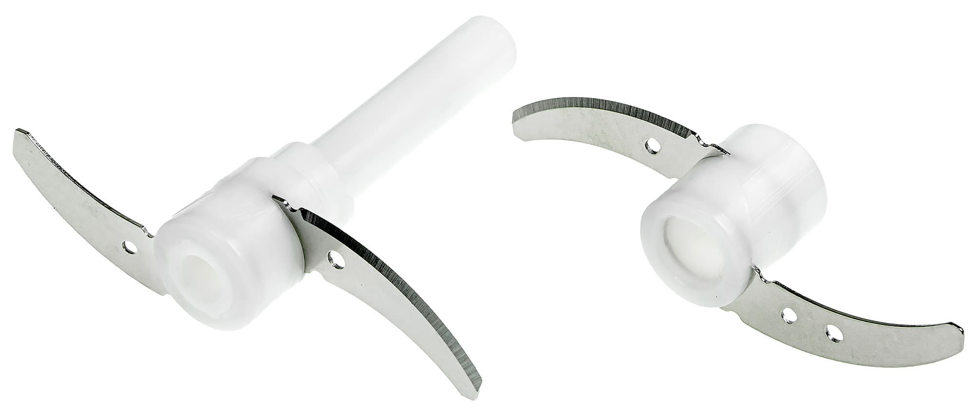 Рабочих лезвий, состоящих из двух серповидных ножей, два. Дополнительная насадка надевается сверху на основной нож и закрепляется поворотом по часовой стрелке. Ножи отлично заточены, так что производить с ними манипуляции надо очень аккуратно.