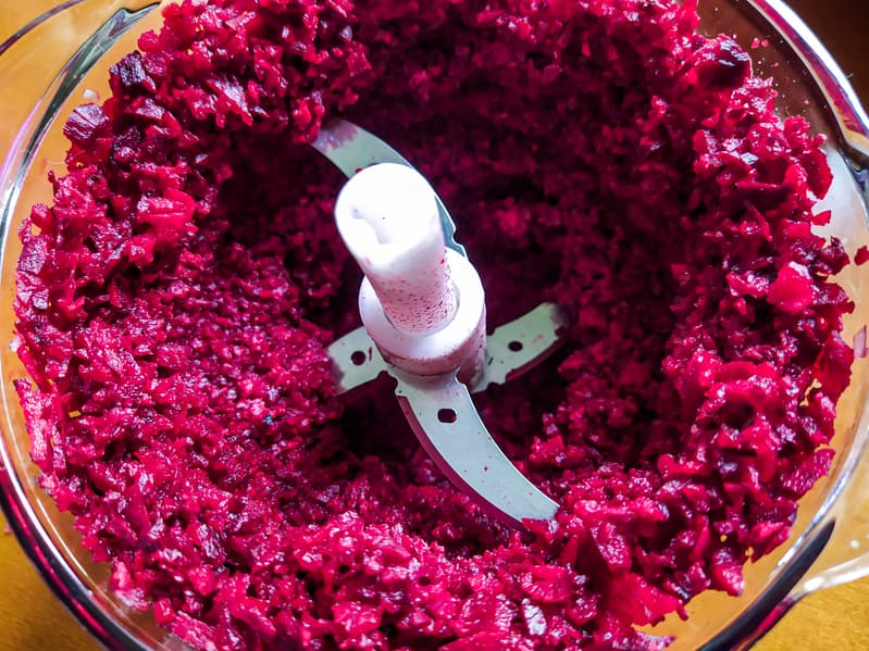 На свеклу ушло 10 секунд, снова с перерывом на перемешивание содержимого чаши.