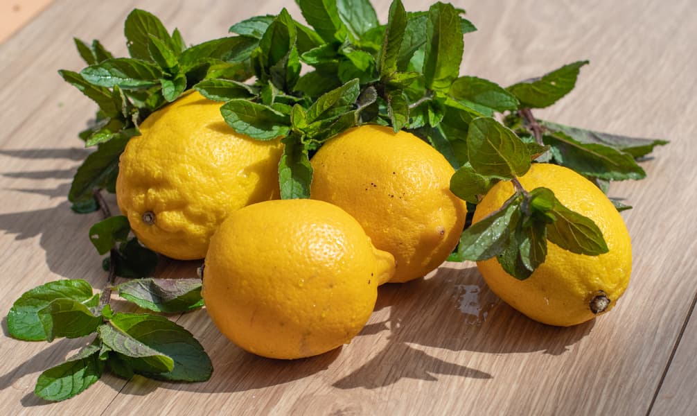 Из свежих лимонов мы отжали сок, свежую мяту вымыли и удалили жесткие стебли.