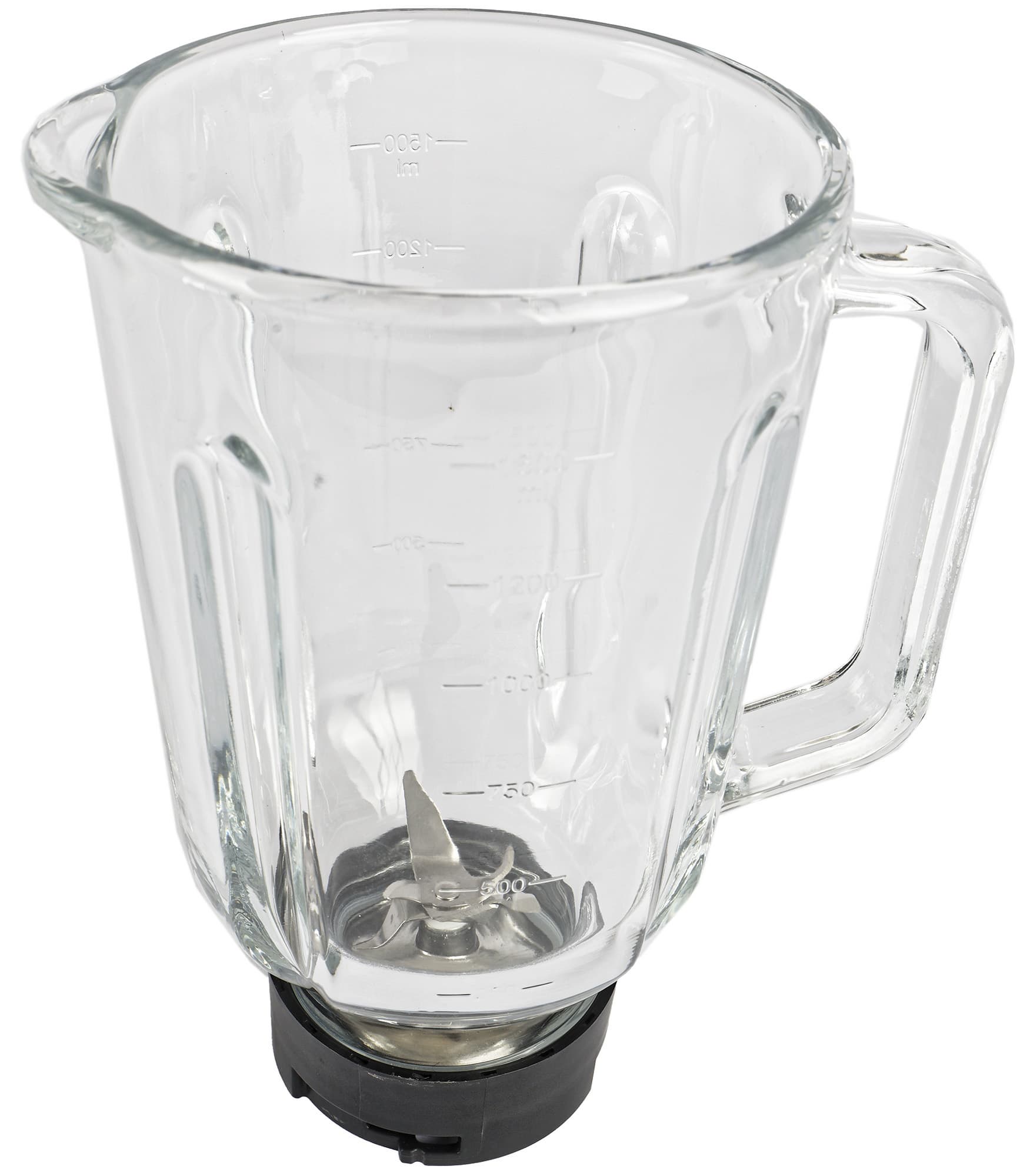 Кувшин блендера — из толстого стекла с литой ручкой и носиком.