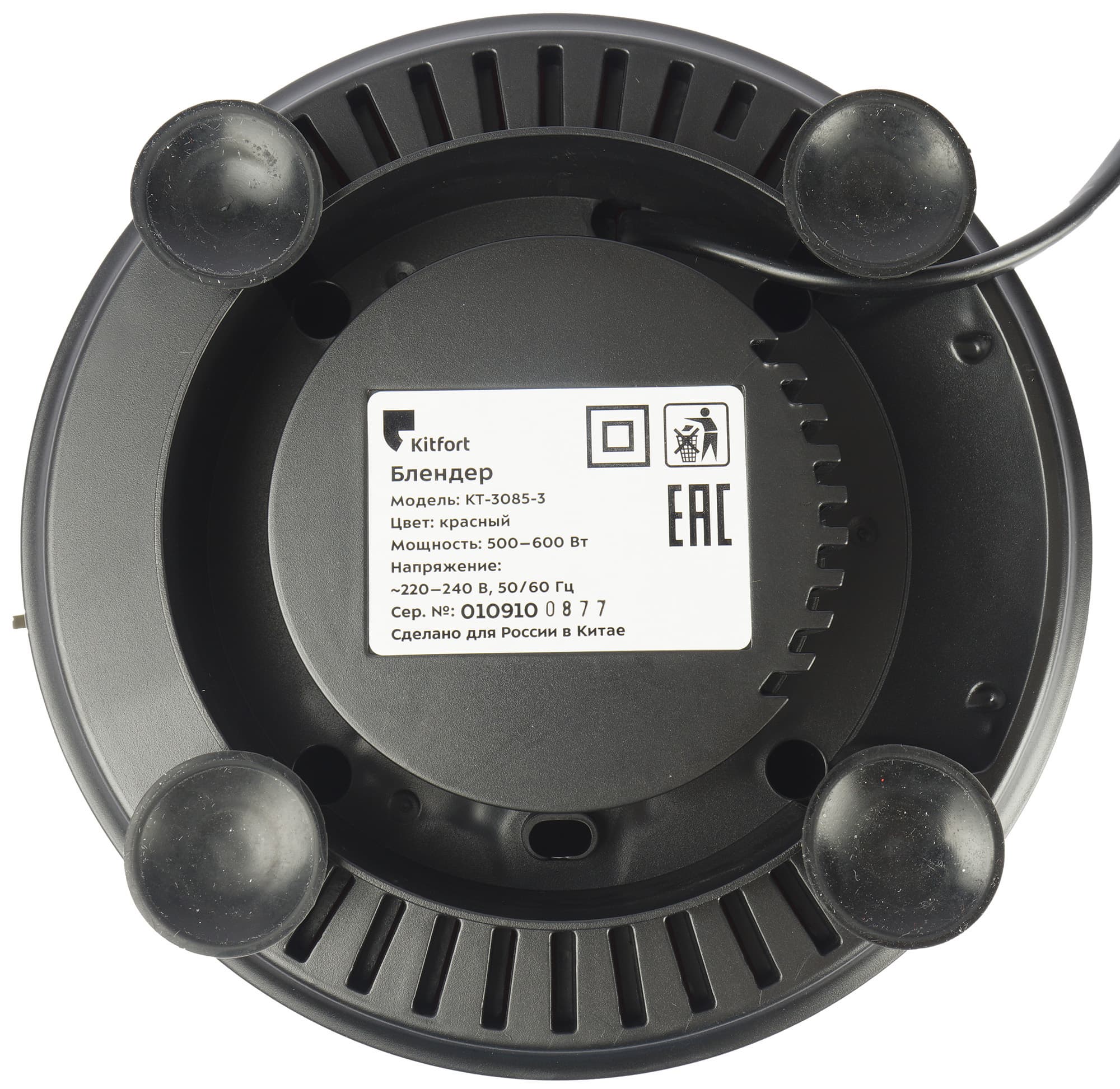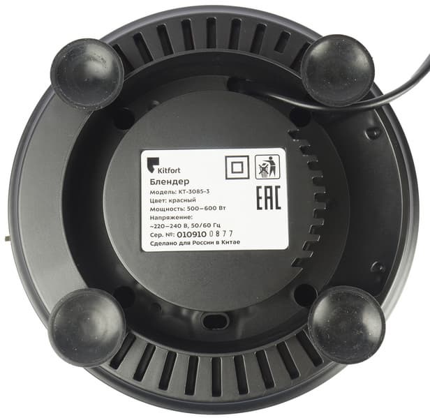 Снизу у блендера имеются резиновые ножки, которые обеспечивают фиксацию устройства на столе и снижают уровень вибрации и шума при работе.