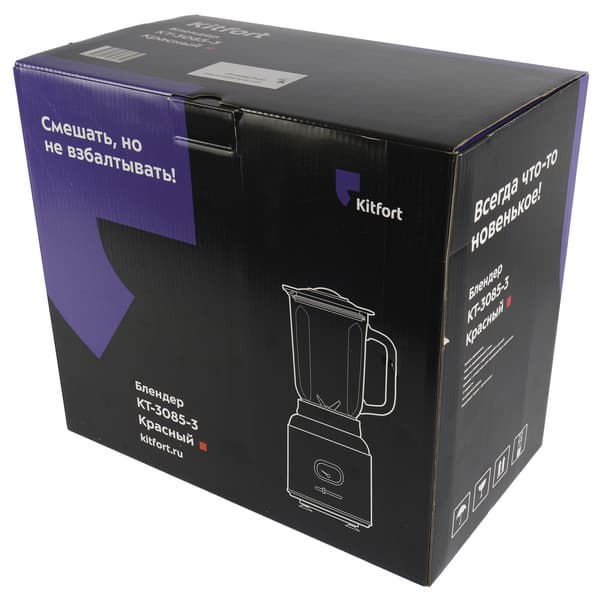 Блендер Kitfort KT-3085 — достаточно простой прибор с небольшой мощностью и всего тремя скоростями вращения ножей, но оформленный в дизайнерском ретро-стиле и выполняющий основные задачи.