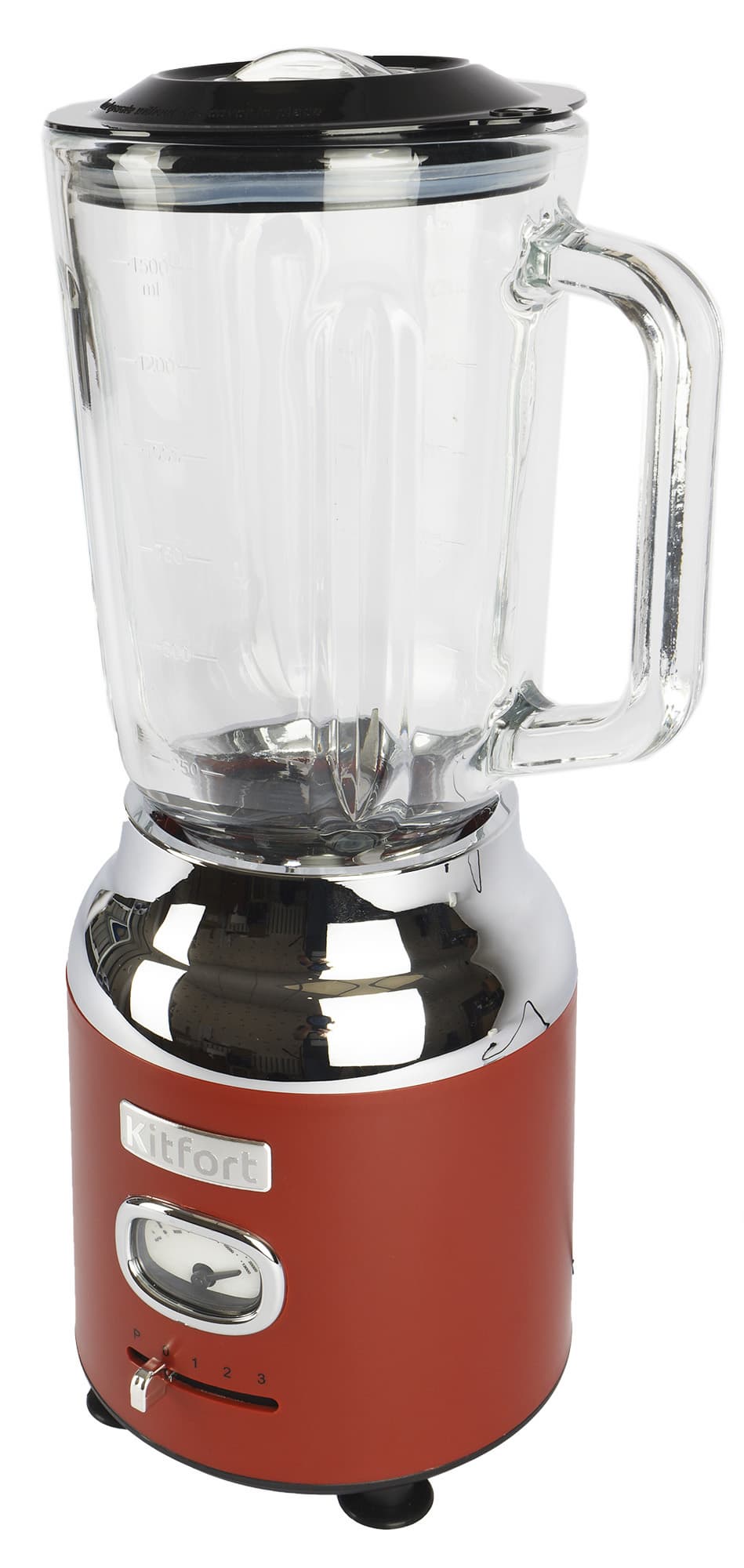Блендер Kitfort KT-3085-3 красного матового цвета, с хромированными деталями, винтажной шкалой и переключателем, с легкостью впишется в ретро-интерьер кухни. А насколько хорошо он работает, будем изучать.
