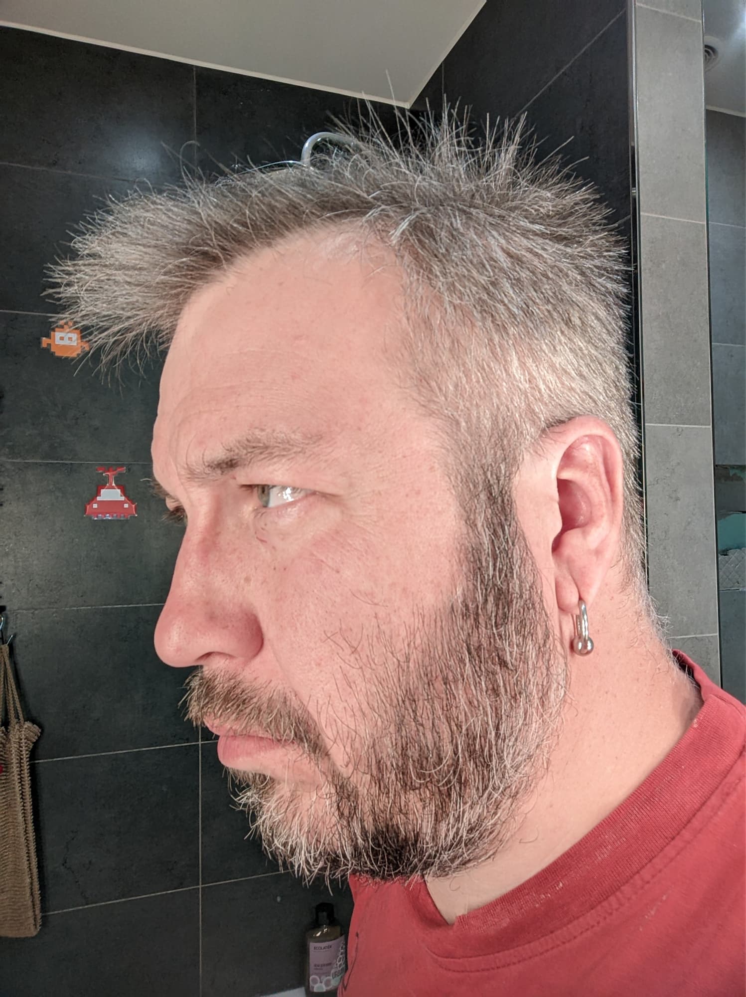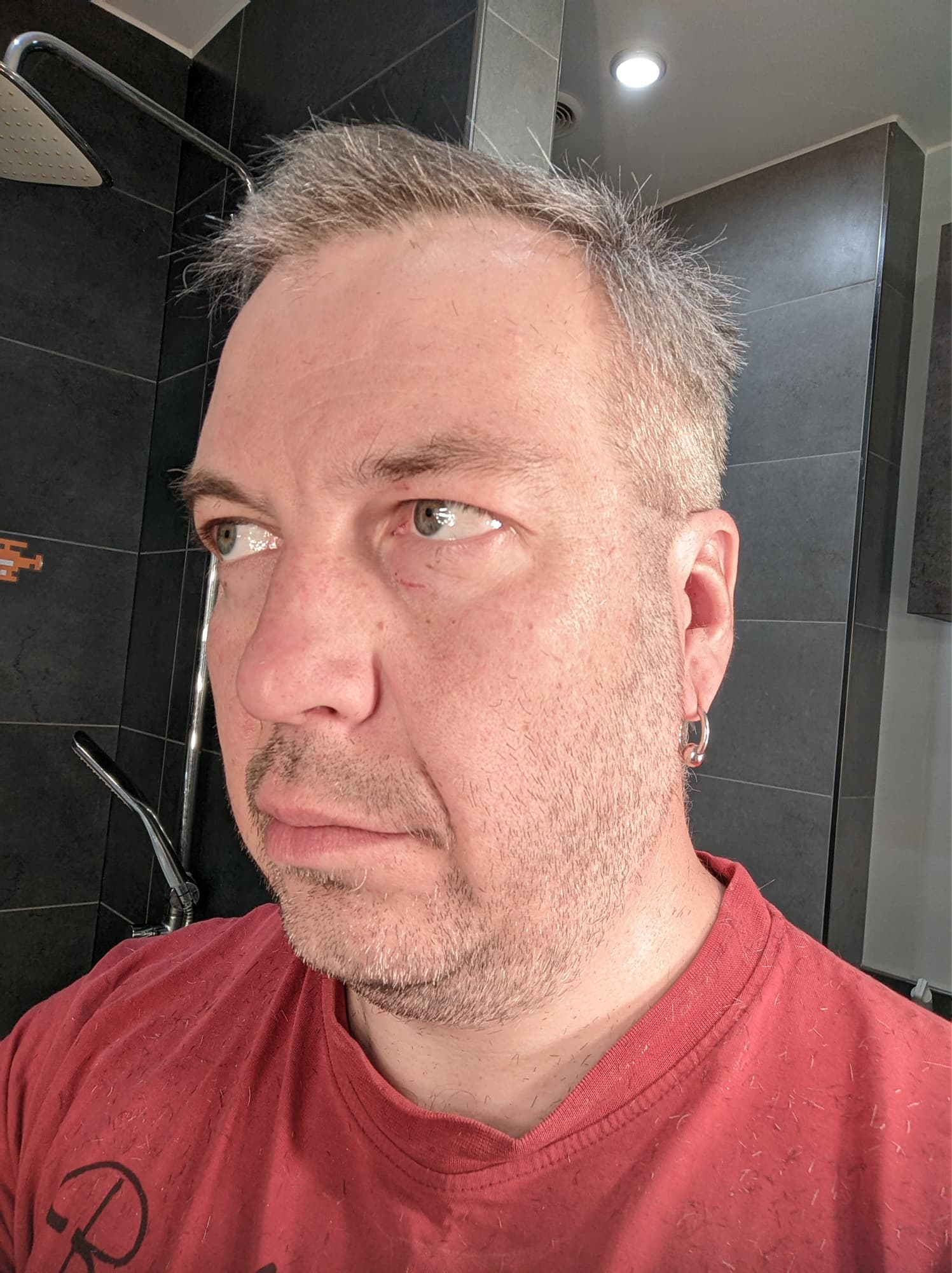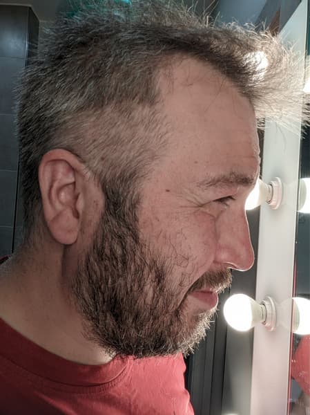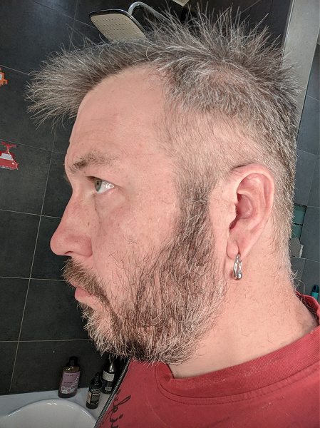 В принципе, опыт оказался примерно тем же, что и при насадке 2 мм. Волосы среза́лись довольно бодро, однако время от времени триммер их довольно больно дергал. Щеки оказались пострижены хорошо, борода и шея — чуть похуже.