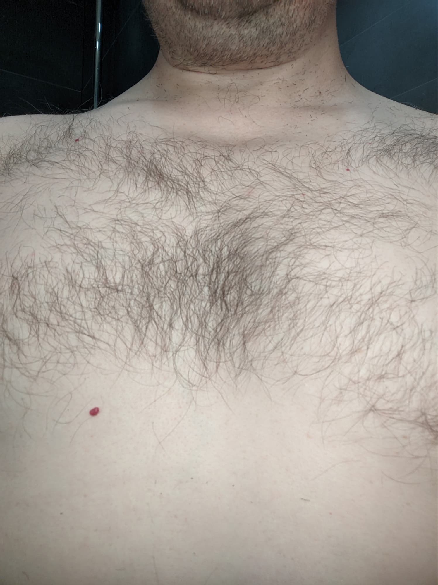 Как заявляет производитель, насадкой для тела удобно брить волосы на теле. Попытаемся удалить растительность на груди.