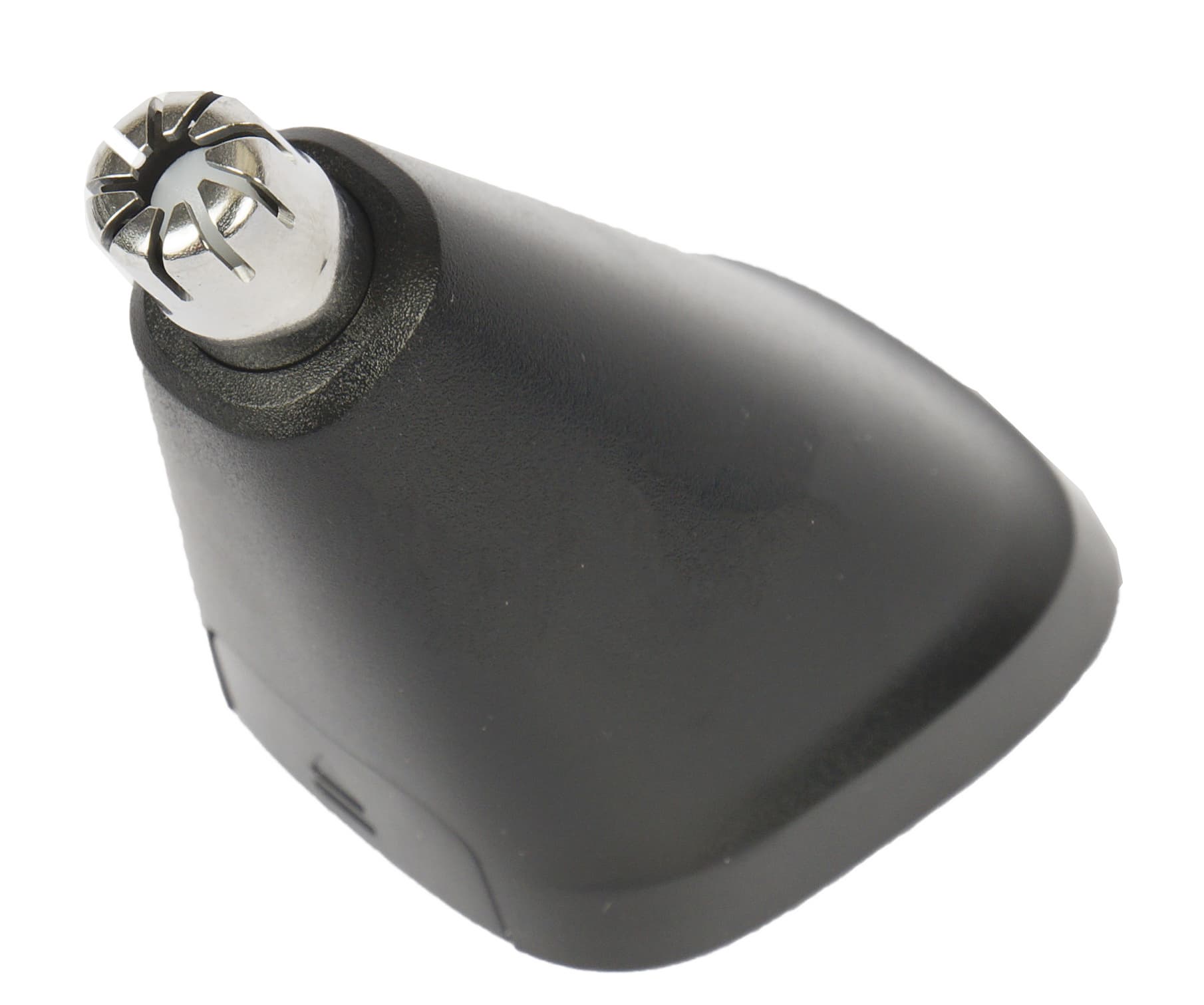Сняв насадку, мы можем увидеть механизм, передающий вращающий момент от мотора к ножам — это обычный асимметричный металлический штырек.