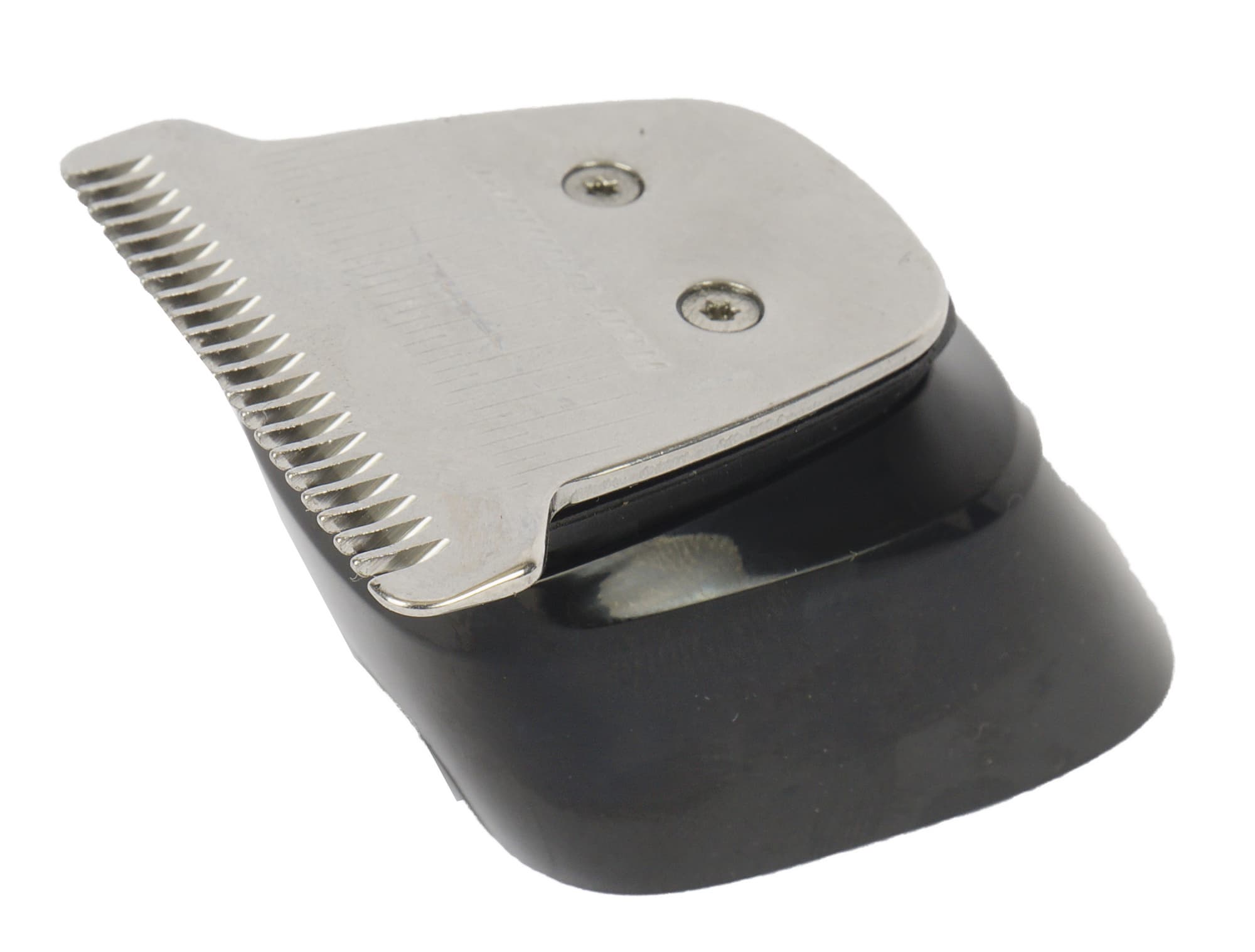 На насадку с широкими лезвиями устанавливаются гребни, соответствующие длине 4 мм, 9 мм, 12 мм, 16 мм, а также гребни L и R, которые служат для стрижки волос вокруг ушей слева и справа соответственно. Длина стрижки при этом будет плавно изменяться: минимальная около ушей и максимальная с другой стороны.