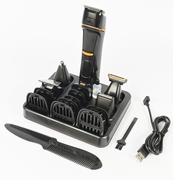 Как мы видим, комплектация у триммера более чем богатая. При этом производитель решил не тратиться на адаптер питания, что, на наш взгляд, вполне оправдано: стандартная USB-зарядка есть у всех, а увеличивать их количество в доме совсем не хочется. Тем более, что подобные устройства обычно укомплектовываются зарядками малой мощности, а значит, пользоваться ими для зарядки телефонов и планшетов будет некомфортно.