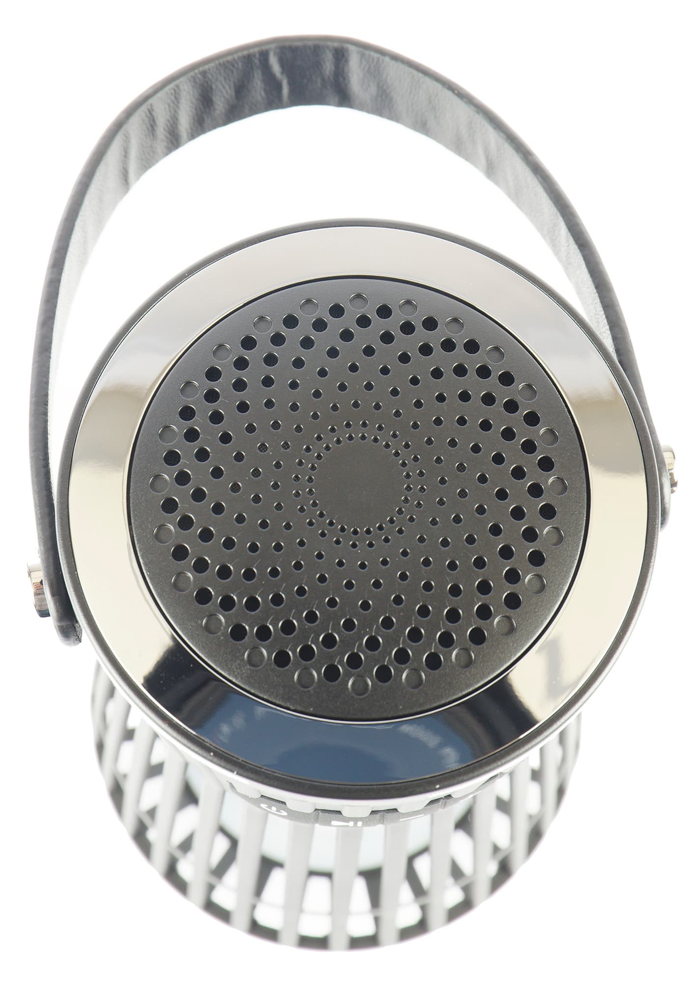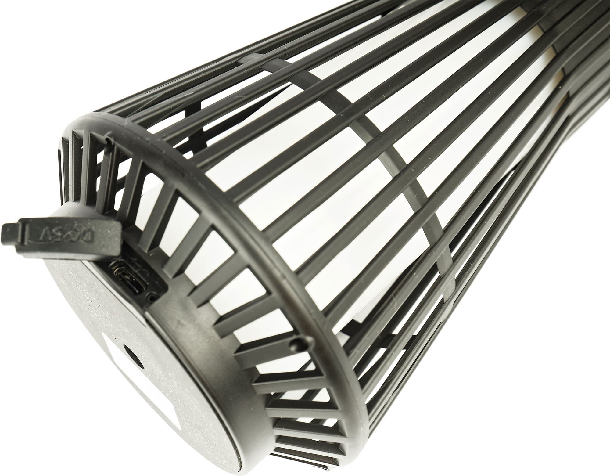 Второй по очереди ночник в нашем обзоре представляет собой фонарь-клетку, тоже напоминающий уличный прибор, но уже не обогреватель, а именно светильник. Тот самый, об который по ночам на даче бьются мотыльки. Его можно подвесить или нести за ручку, либо поставить на стол или докупить штатив и установить в землю. И не забывайте, что вдобавок ко всему ночник является еще и музыкальной колонкой.