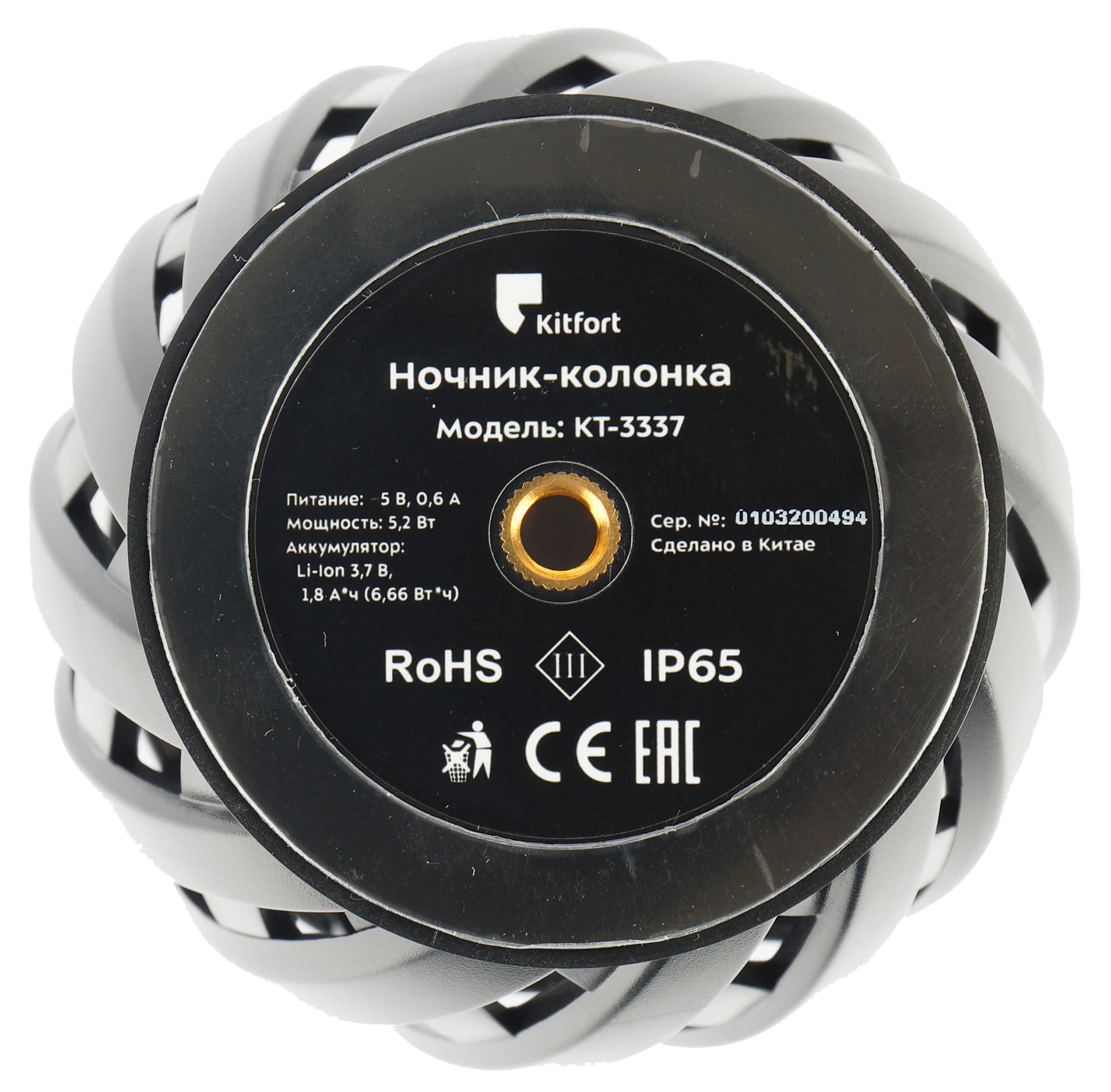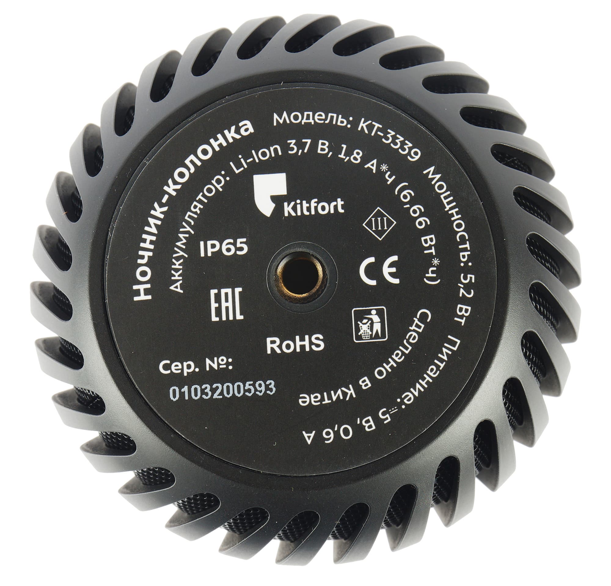 Заряд держится достаточно долго — в режиме колонки-ночника по 7 часов у КТ-3338 и КТ-3339 и 3,5 часа у КТ-3337. А в режиме ночника у всех моделей время работы до 25—37 часов.