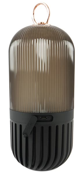 Первый ночник из подборки сразу же привлек наше внимание. Внешне он напоминает смесь крохотного газового обогревателя и лампады и от него совсем не ждешь возможностей звуковоспроизведения.