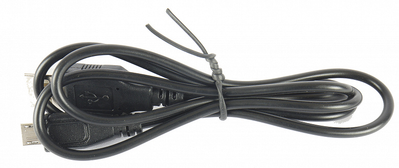 К устройству полагается кабель Micro-USB. Адаптера в комплекте нет, поэтому заряжать прибор придется от компьютера или через собственный адаптер.