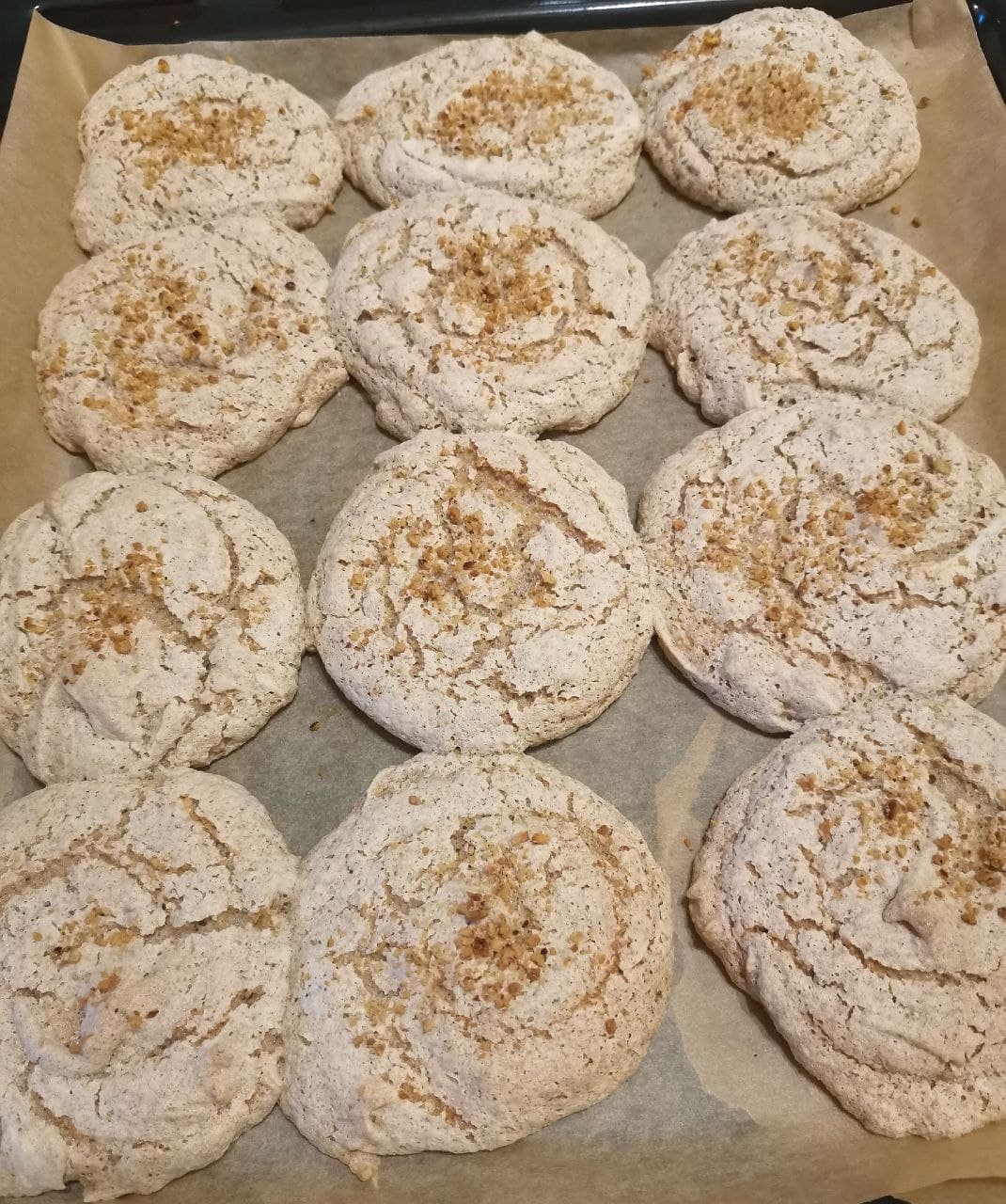 Печенье получилось похожим на макаруны по текстуре: хрустящая меренга сверху и влажный ореховый центр. Приготовление заняло совсем немного времени. Мы остались довольны.