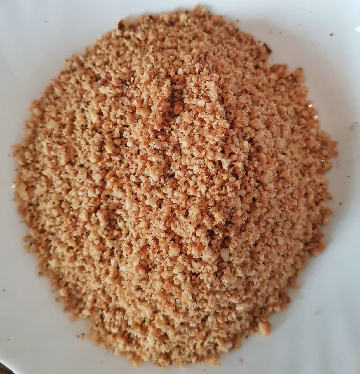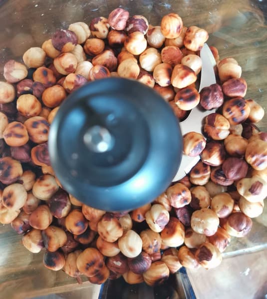 Обжарили его на сковородке, частично сняли шелуху, загрузили в измельчитель. Прокручивали, меняя скорости.