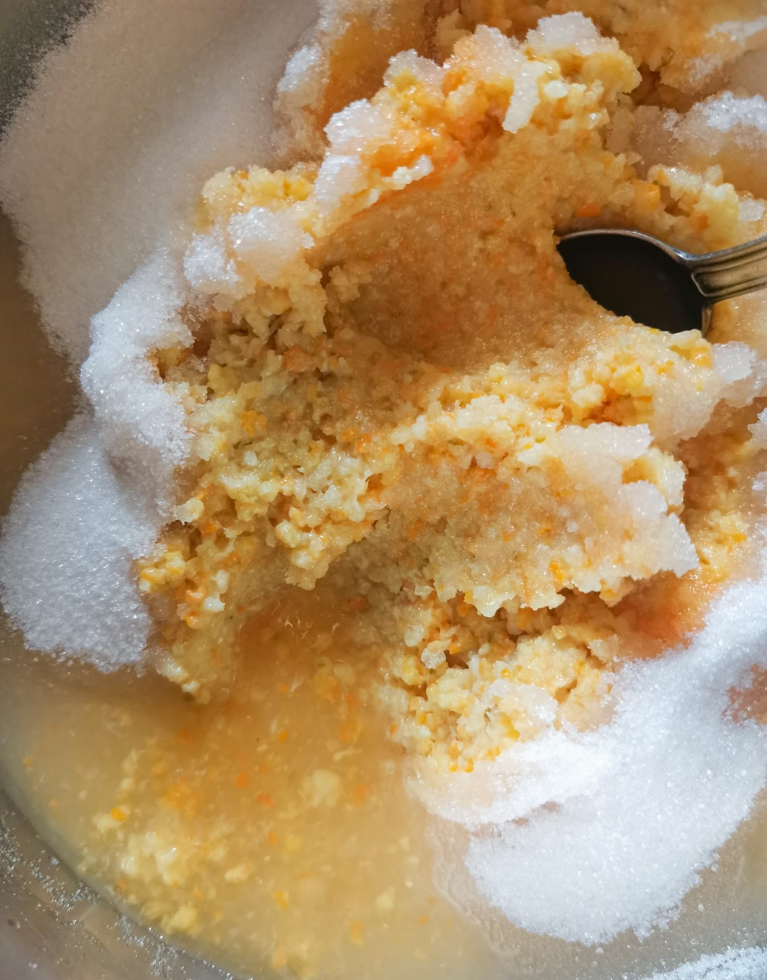 Нарубленную кожуру мы смешали с сахаром и лимонным соком, варили в течении 20 минут, загустили желатином.