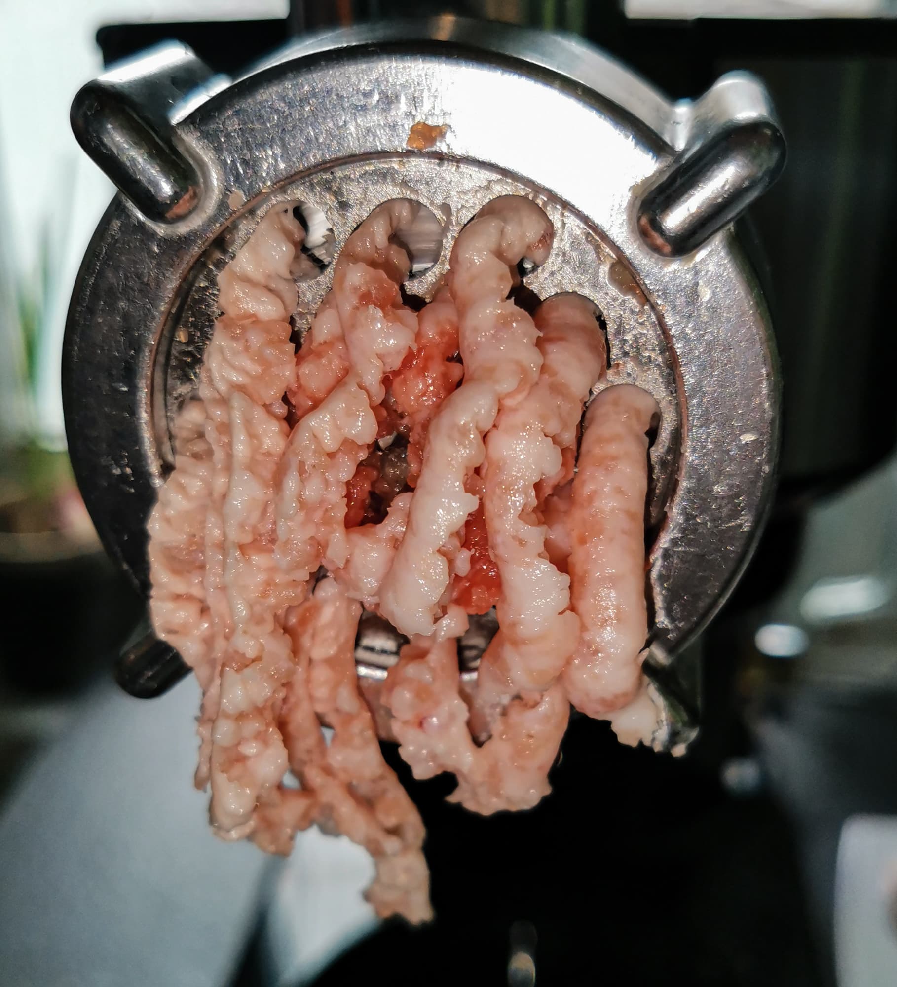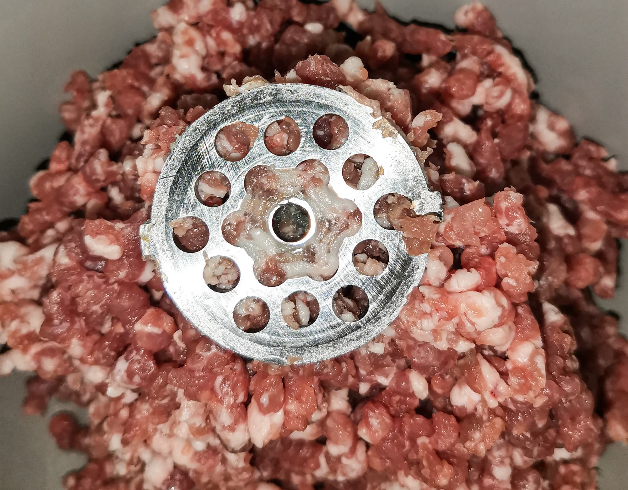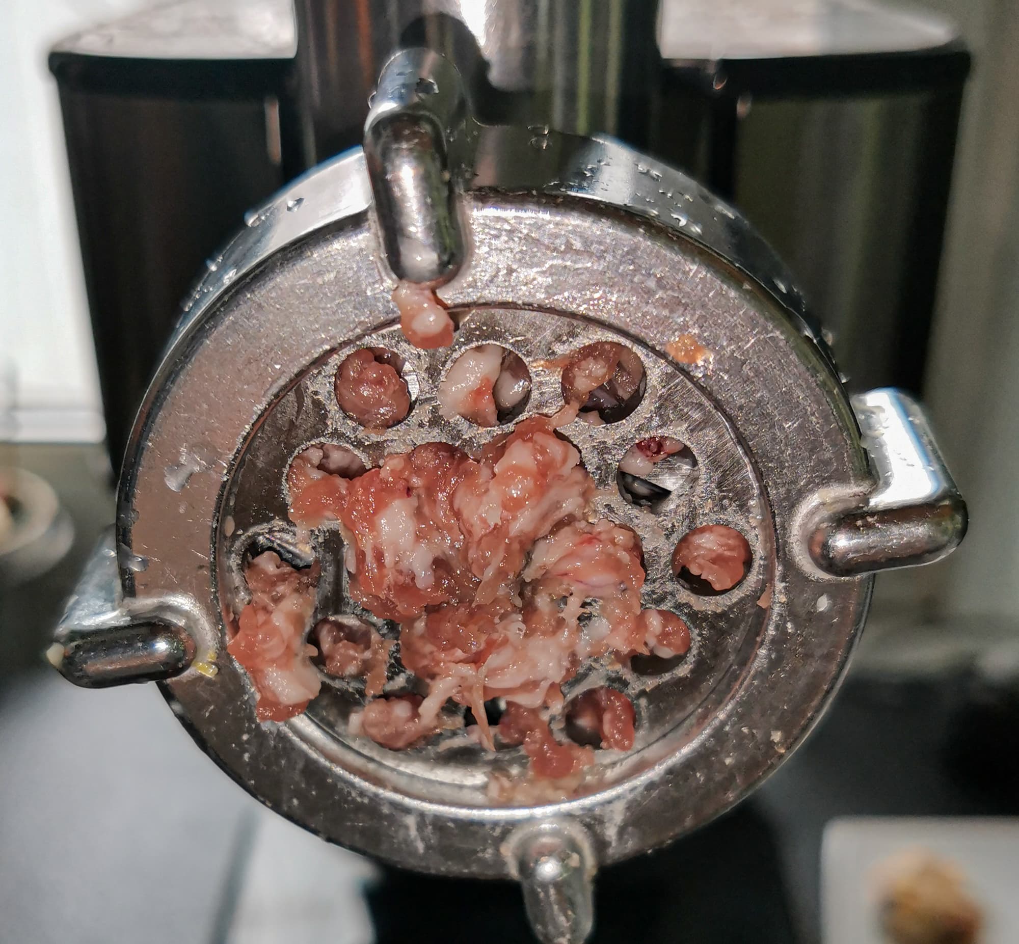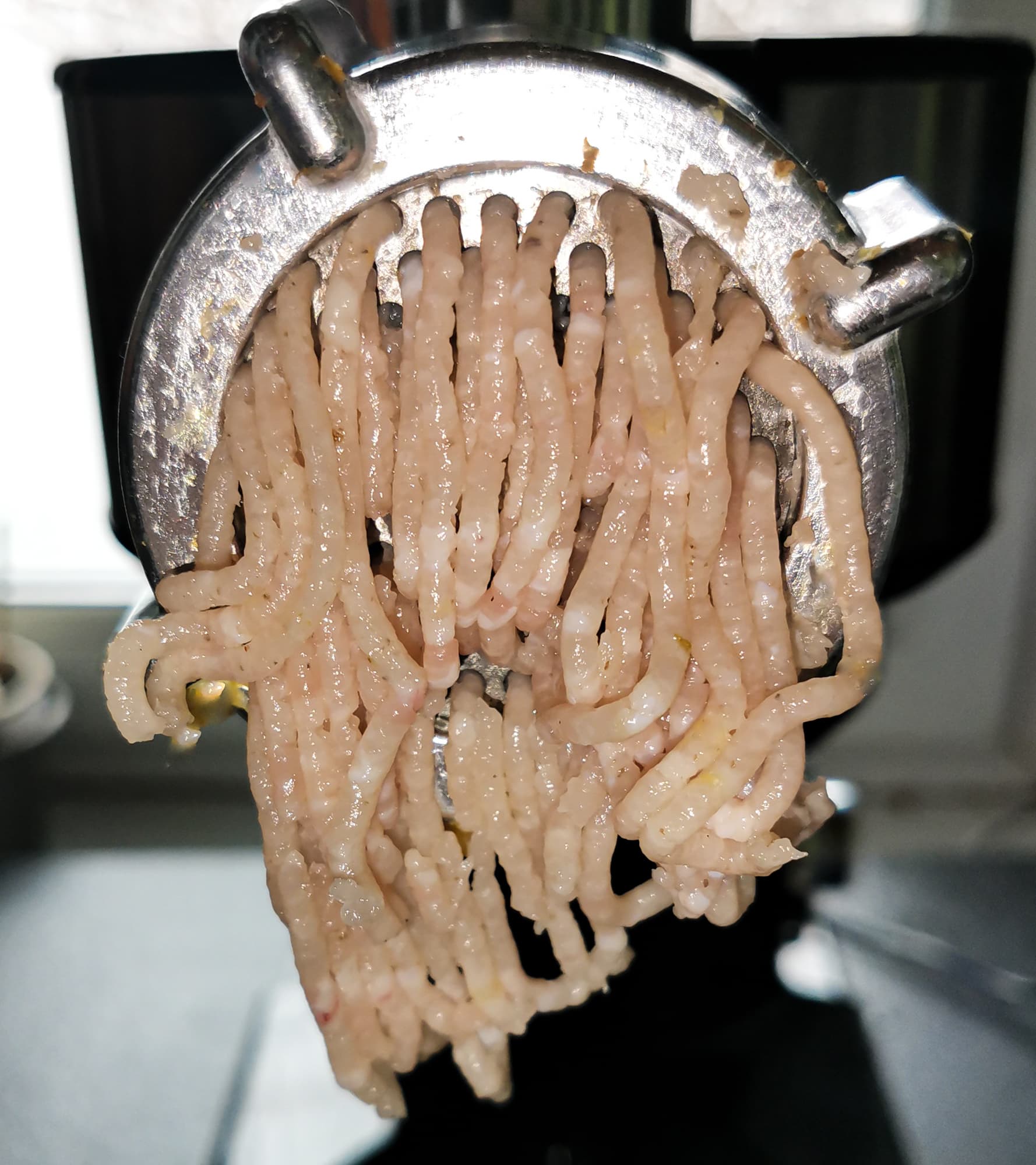 Курицу мы решили прокрутить на самой мелкой решетке.