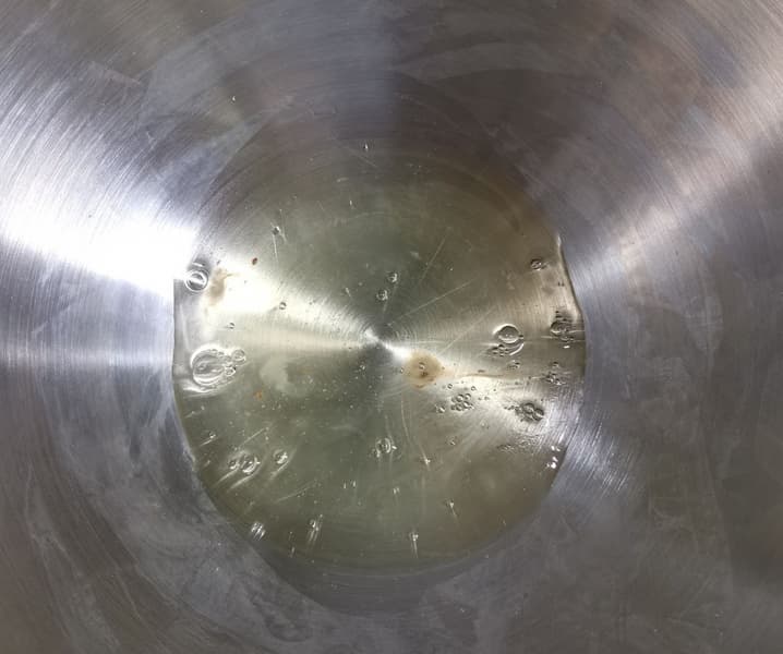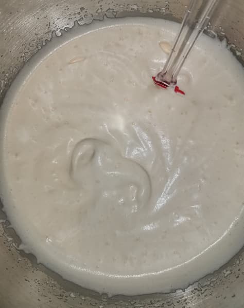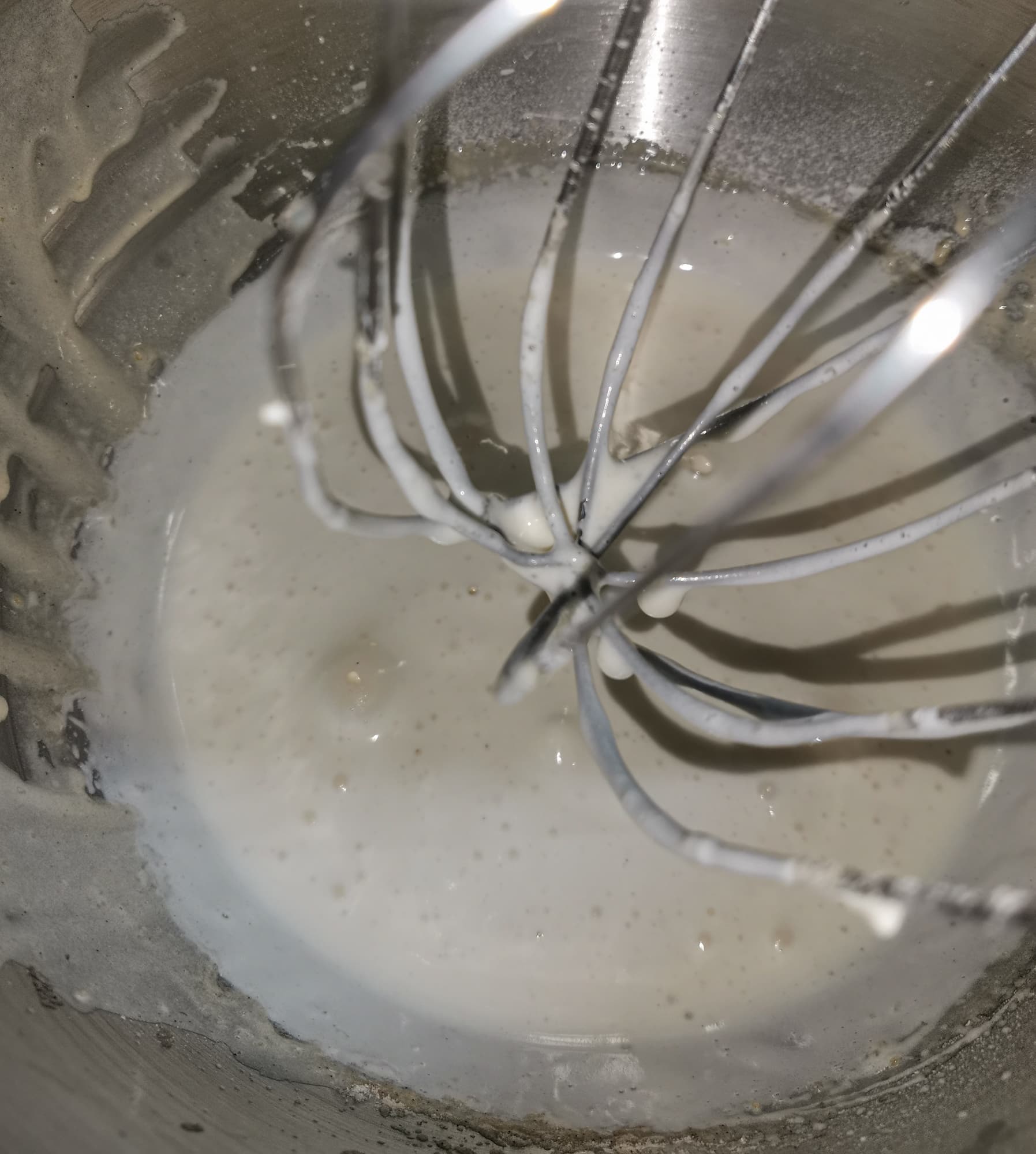 Тесто вымешивалось, но миксер сильно скрипел и работал с явным напряжением. Вся мука собралась со стенок в основной комок и не налипала.