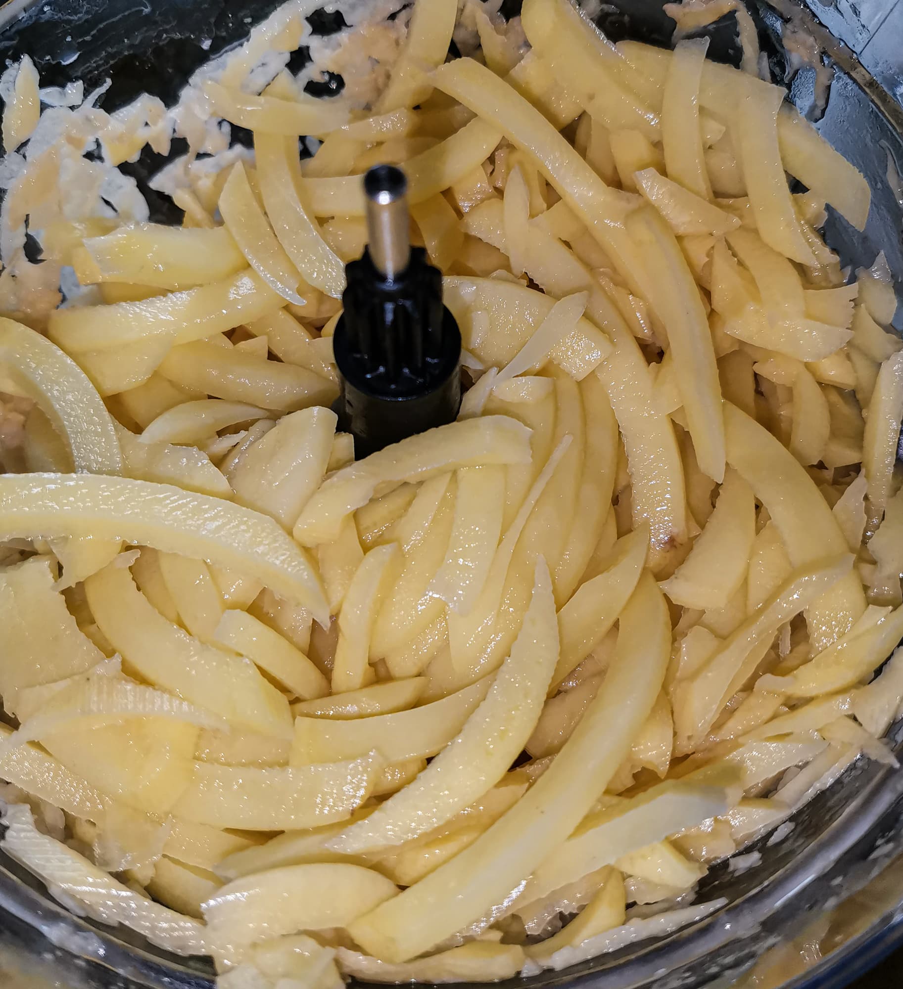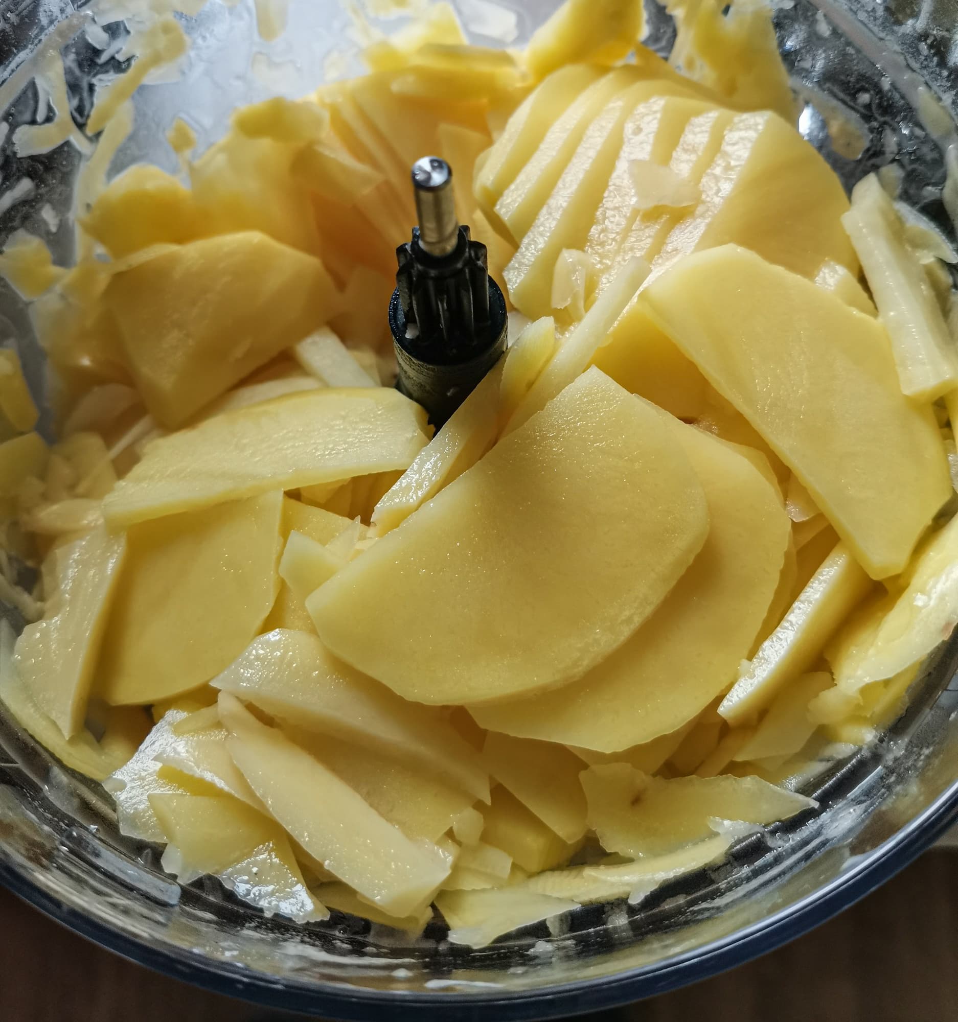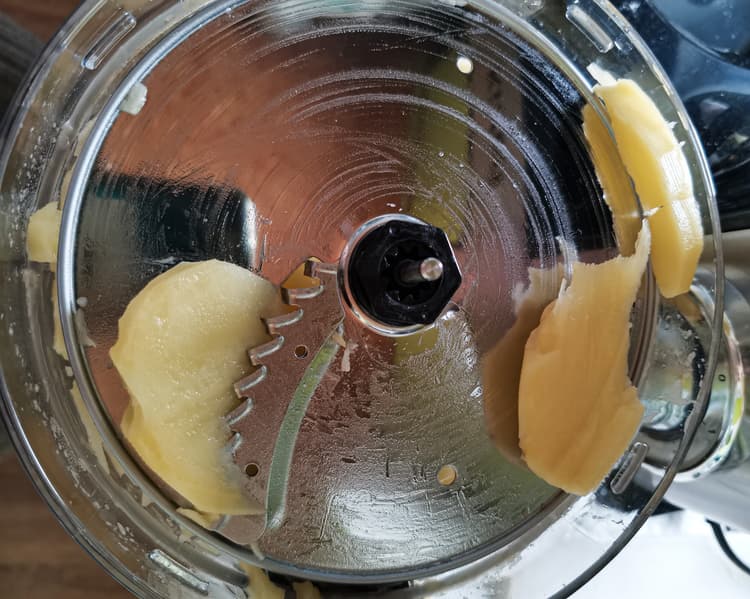 Сверху диска осталось немного недорезанных кусочков картофеля, которые по размеру приближались к нарезанным и могли использоваться вместе с ними.