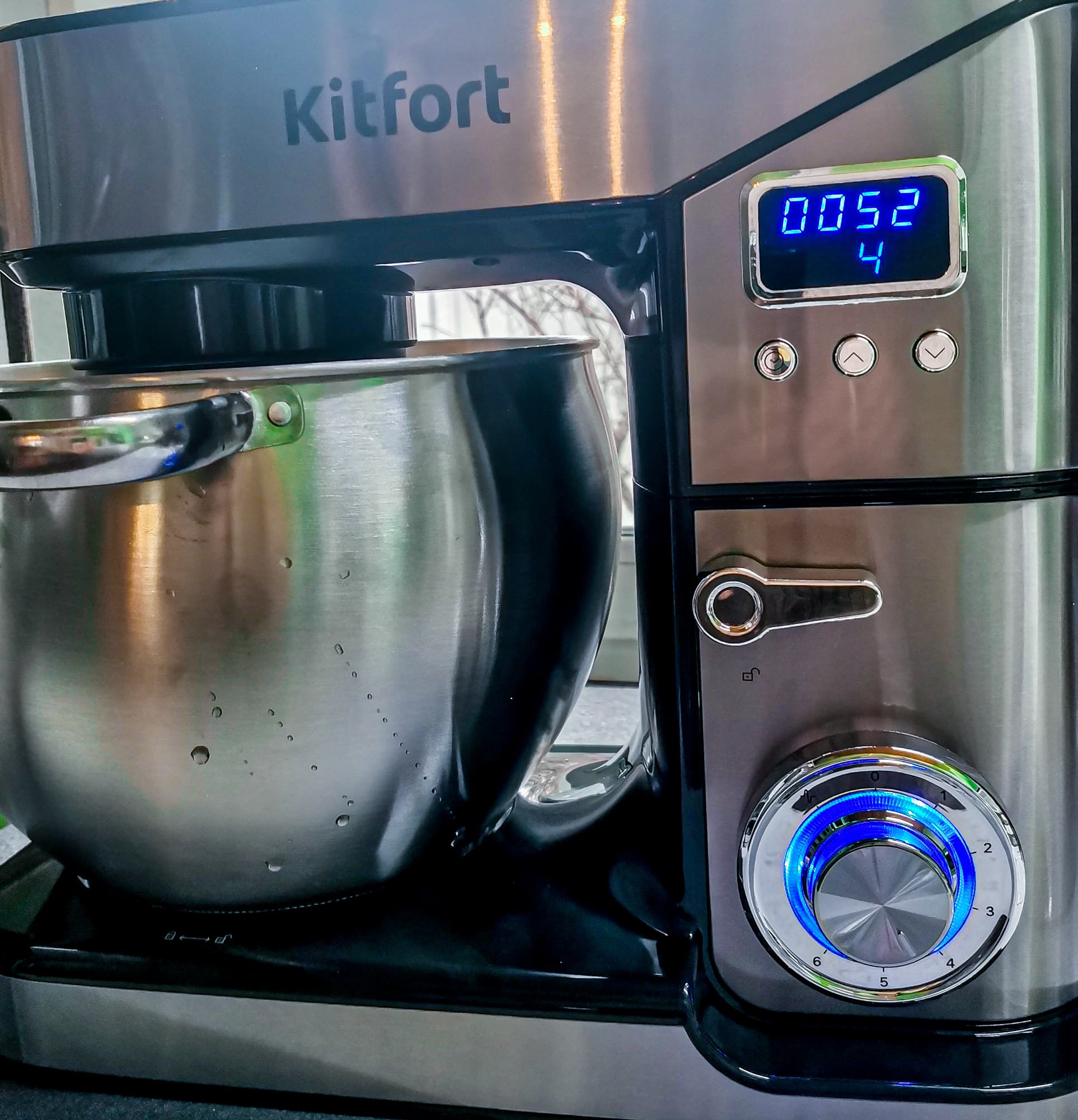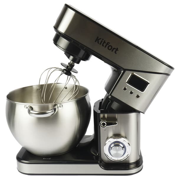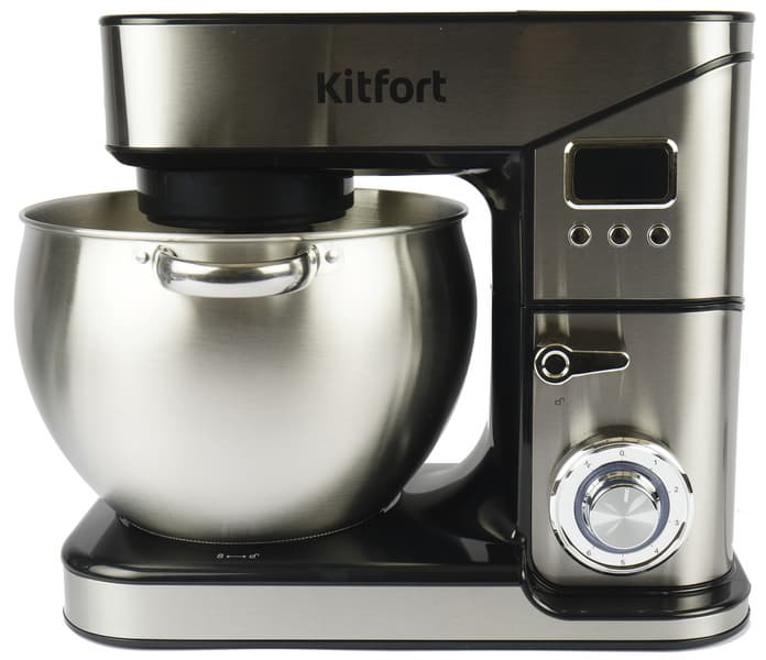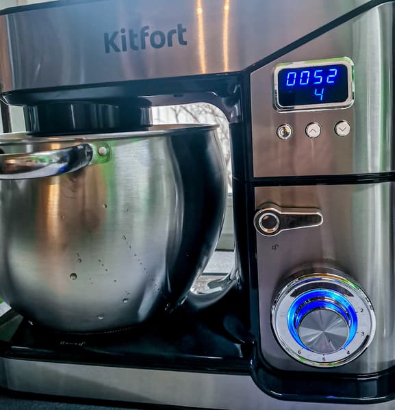 Прибор удобно управляется с помощью поворотной ручки и дисплея, имеет 6 скоростей, импульсный режим и таймер. Сборка несложная. Kitfort KT-3413 подойдет для использования в больших семьях, домашних кондитерских, небольших кафе и всем, кто любит много готовить и кого не испугает размер прибора.