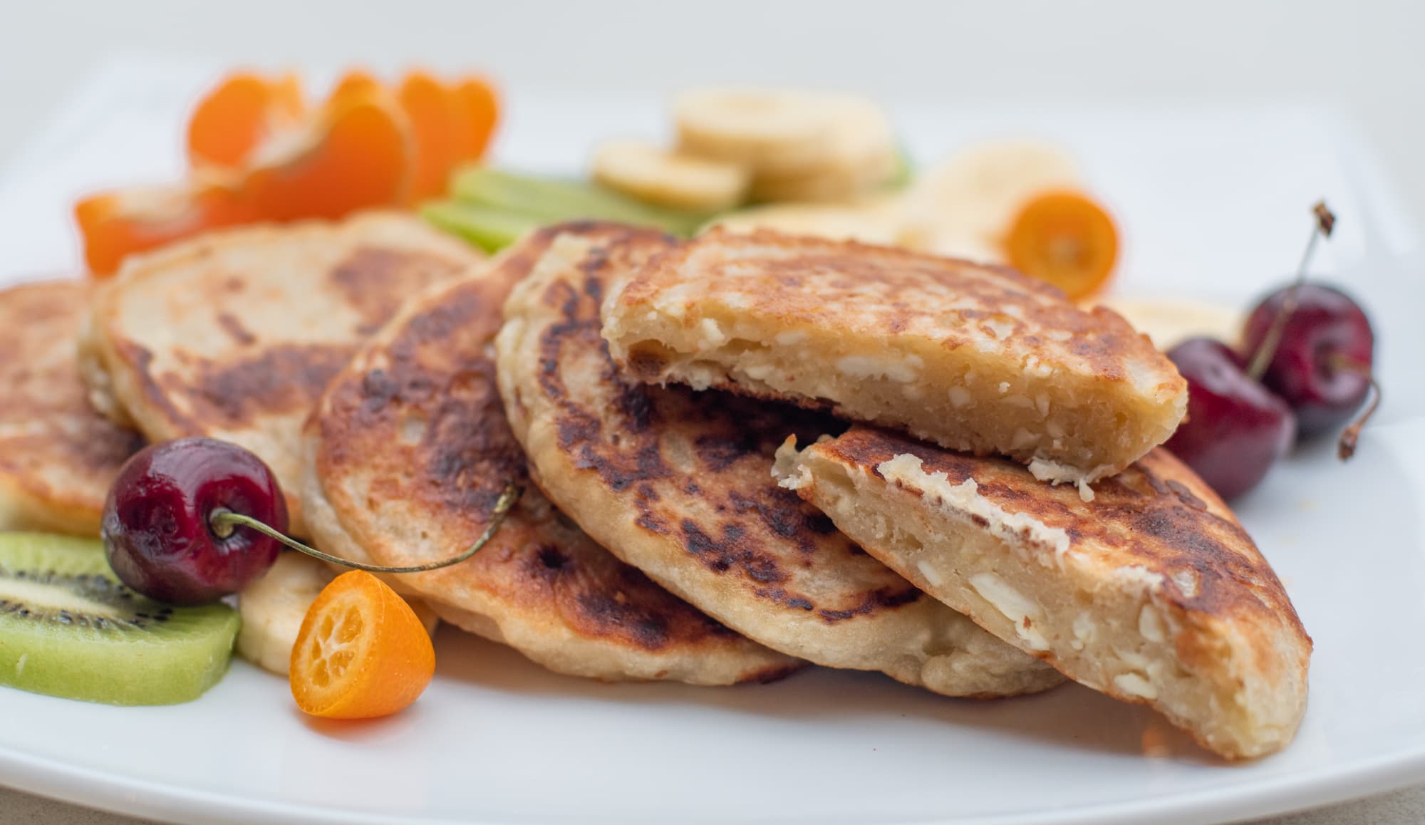 Творожные оладьи с бананом
