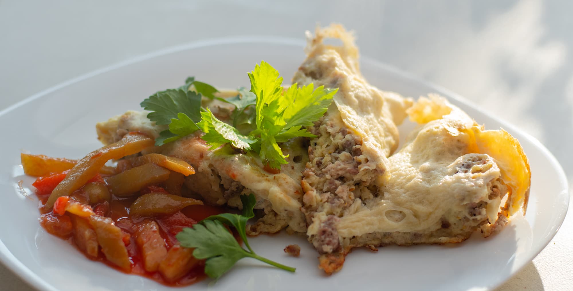 Из смеси фарша и взбитых в миксере яиц мы решили сделать пышный омлет.