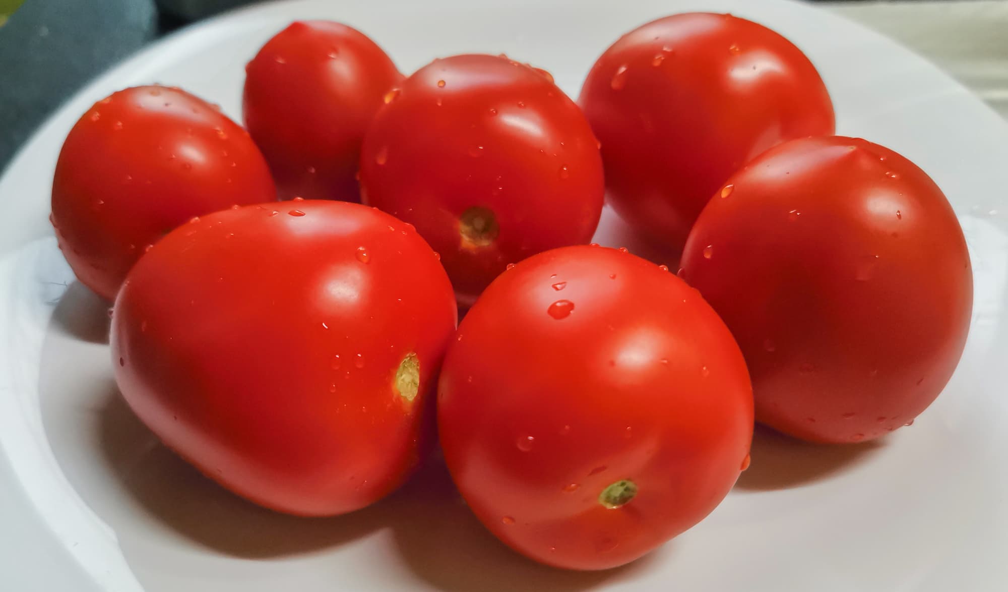 Мы взяли сливовидные томаты, порезали их на четвертинки, плодоножки не вырезали, так как они оказались совсем маленькими. Нарезанными томатами заполнили половину кувшина.