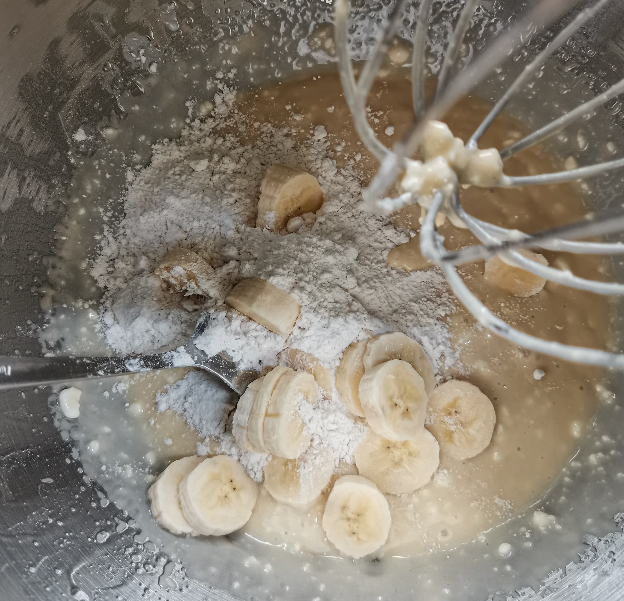 Затем в смесь добавили бананы и еще муки.