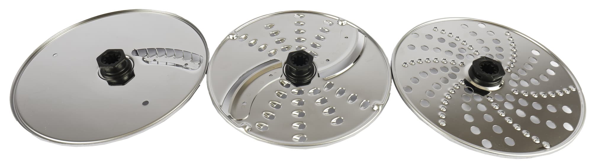 Диск с крупной теркой и шинковкой двусторонний — с одной стороны терка, с другой шинковка. Остальные диски односторонние. Лезвия дисков очень острые и это не обычное предупреждение, это реально так, при работе нужно быть максимально осторожным.