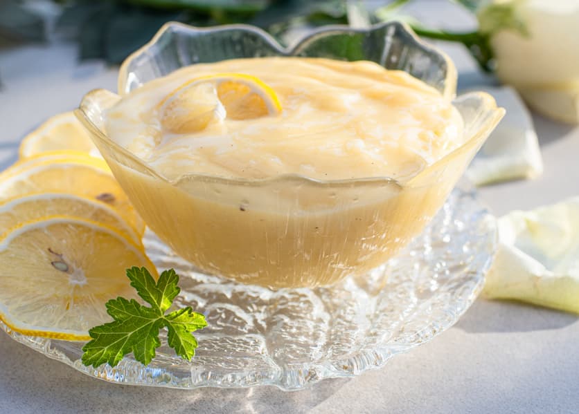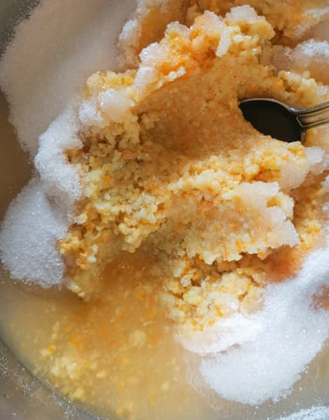 А из другой части сока сделали лимонный курд, используя вместе с ним яйца, сахар и крахмал.