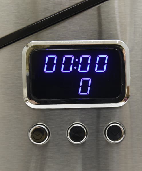 На дисплее отображается время работы, а если установлен таймер, то обратный отсчет. Таймер устанавливается с помощью кнопок под дисплеем — кнопки «таймер» и кнопок «больше» и «меньше».
