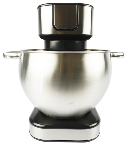 Для превращения в планетарный миксер на поддон основного блока устанавливается чаша из нержавеющей стали, а к шпинделю сверху закрепляется одна из трех насадок.