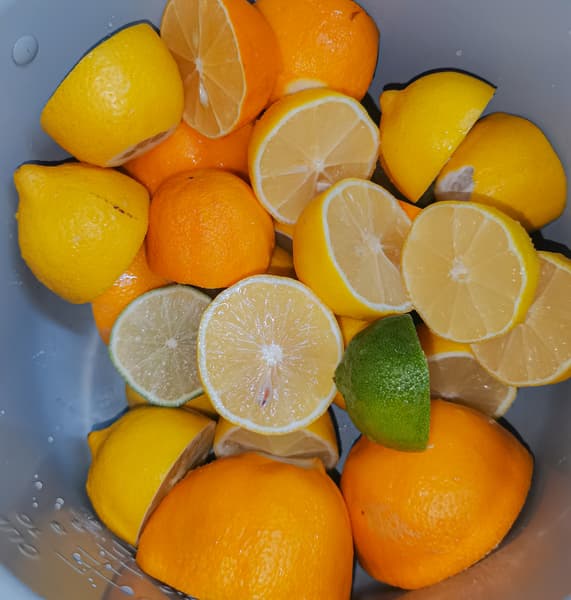 Собрали соковыжималку и обрабатывали цитрусы на скорости 1. Мелкие лимоны отжимались хорошо, лаймы выжались примерно наполовину, а крупным лимонам сорта Мейер для более быстрого отжима нужен конус большего диаметра. В целом все цитрусы мы отжать смогли — какие-то быстрее, какие-то медленнее.