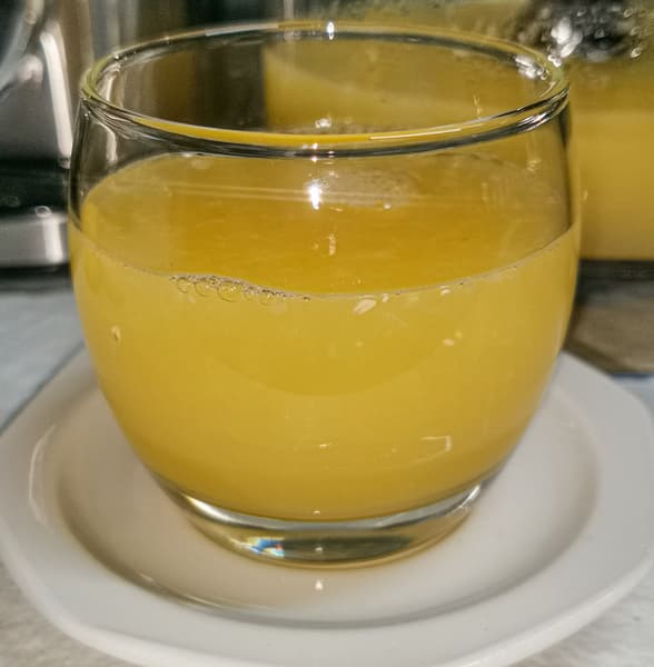 Сок получился прозрачный с небольшим количеством мякоти.