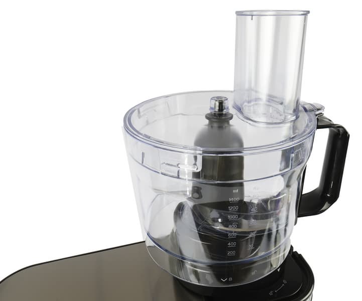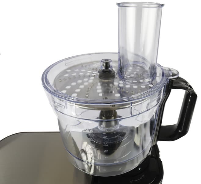 Крышка хорошо и без зазоров прилегает к чаше, ее загрузочное отверстие большое, можно добавлять продукты в процессе готовки не останавливая мотор. Венчик для взбивания сконструирован таким образом, что практически не разбрызгивает жидкость по стенкам чаши и может взбить даже маленький объем — 2 яичных белка.