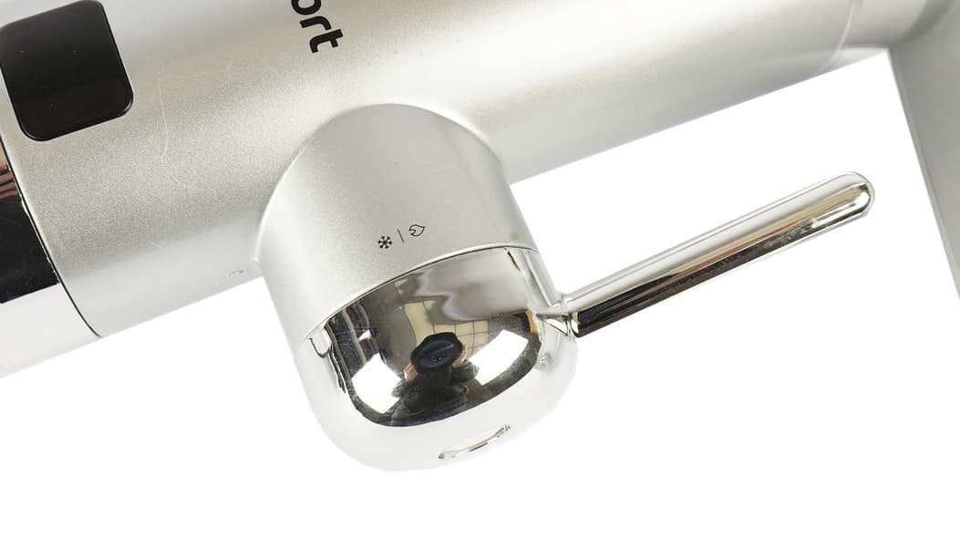 В среднем и нижнем положении ручки подогрев отключен, а дисплей неактивен. Напор регулируется плавно — как у обычного крана. Температура зависит от напора: чем он слабее, тем горячее будет вода.