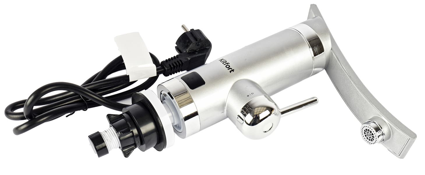 Проточный нагреватель Kitfort KT-4028 выполнен в виде вертикального смесителя, что делает его установку несложной, а управление — интуитивно понятным. Он не занимает много места, обладает внушительной мощностью и пригодится везде, где отсутствует горячее водоснабжение и нет возможности (или необходимости) инсталлировать накопительный бойлер.