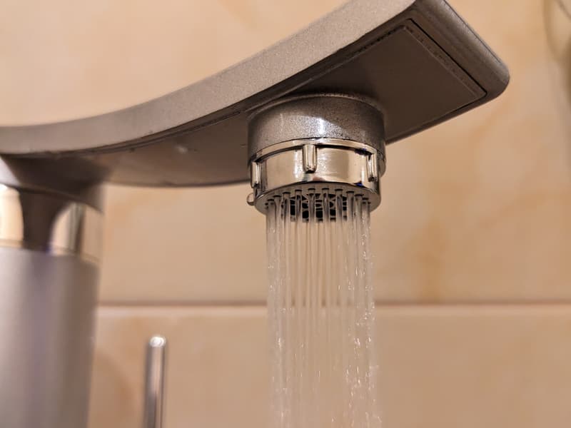 Как и у всех проточных нагревателей с нерегулируемой мощностью, температура воды в этой модели зависит от напора: чем меньше расход, тем она теплее. И наоборот — полностью открытый кран лишь слегка нагревает проходящую сквозь тэн жидкость.