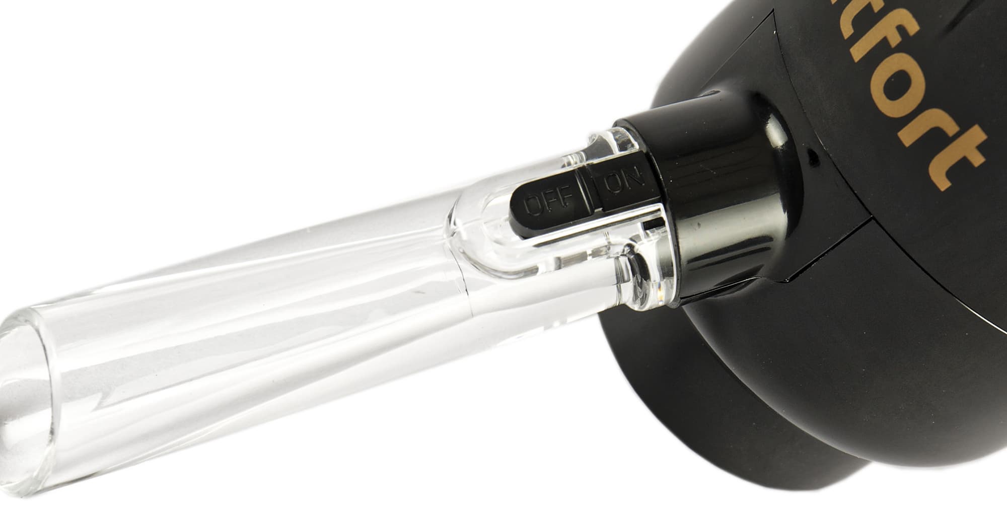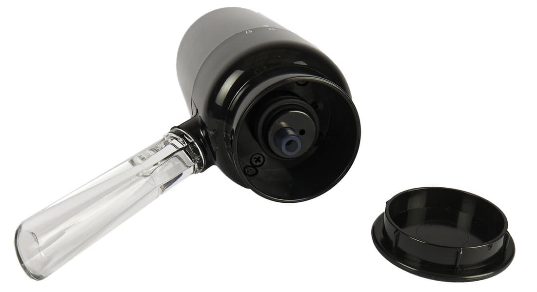 За «дыхание» вина отвечает клапан в основании носика: в положении «On» часть воздуха соединяется со струей воды. Образующиеся пузырьки хорошо заметны через прозрачные стенки трубки.