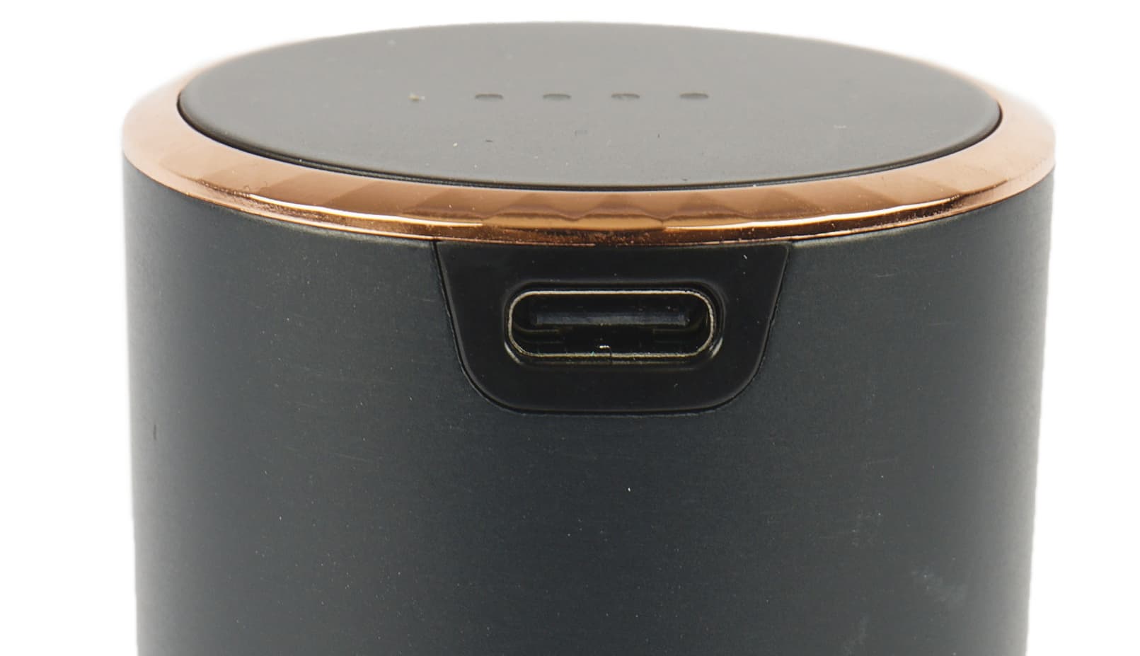 На верхнем торце есть индикатор уровня заряда из четырех белых светодиодов.
