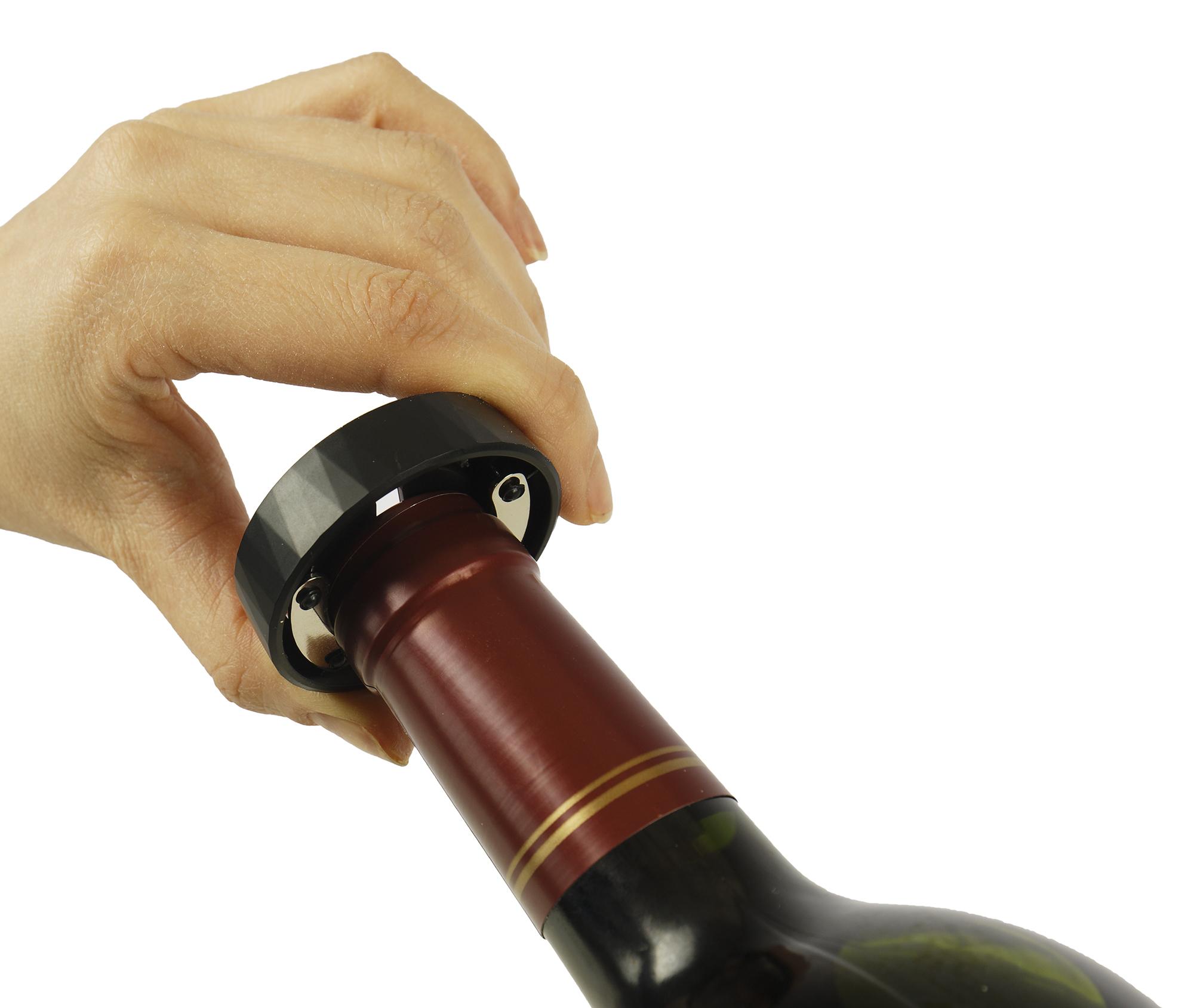 Прибор плотно надевается на горлышко бутылки — в том числе за счет силиконовой прокладки, защищенной от повреждений при хранении специальной крышкой.