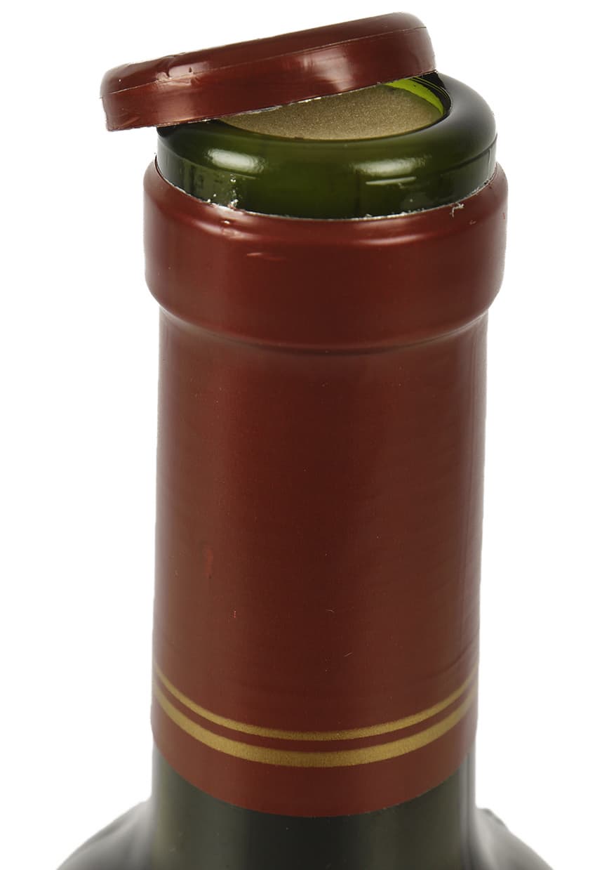 Чтобы полностью удалить металлизированный колпачок, защищающий пробку, достаточно пары оборотов. Срез получается ровным, фольга не заминается.