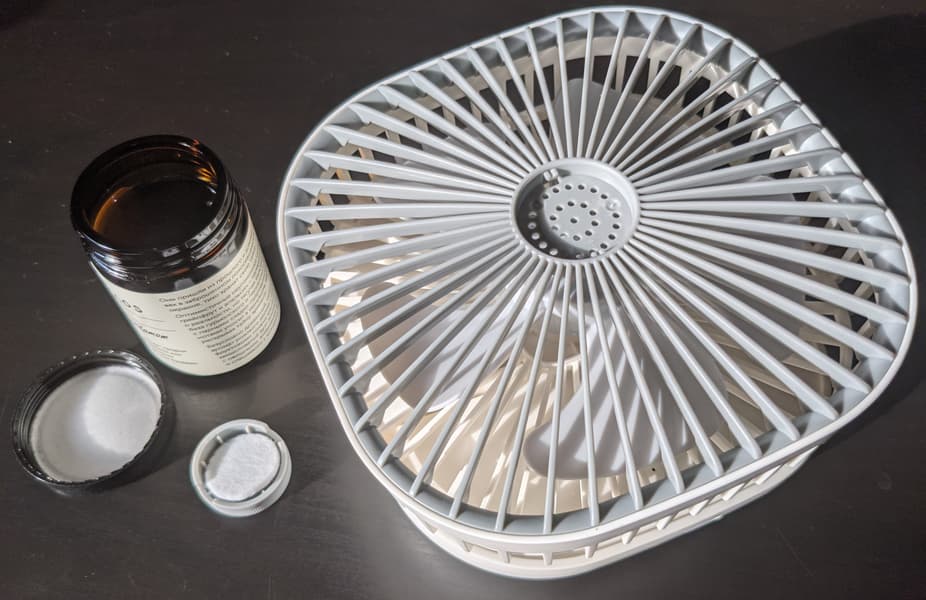 Для использования в режиме ароматизатора достаточно открыть центральную крышку на вентиляторном блоке. Внутри находится диск из впитывающего материала (фетра). На него надо капнуть эфирным маслом или брызнуть духами, закрыть крышку и включить вентилятор. Пахучее вещество постепенно испаряется с диска, через отверстия попадает к лопастям вентилятора, откуда его разносит воздушным потоком.
