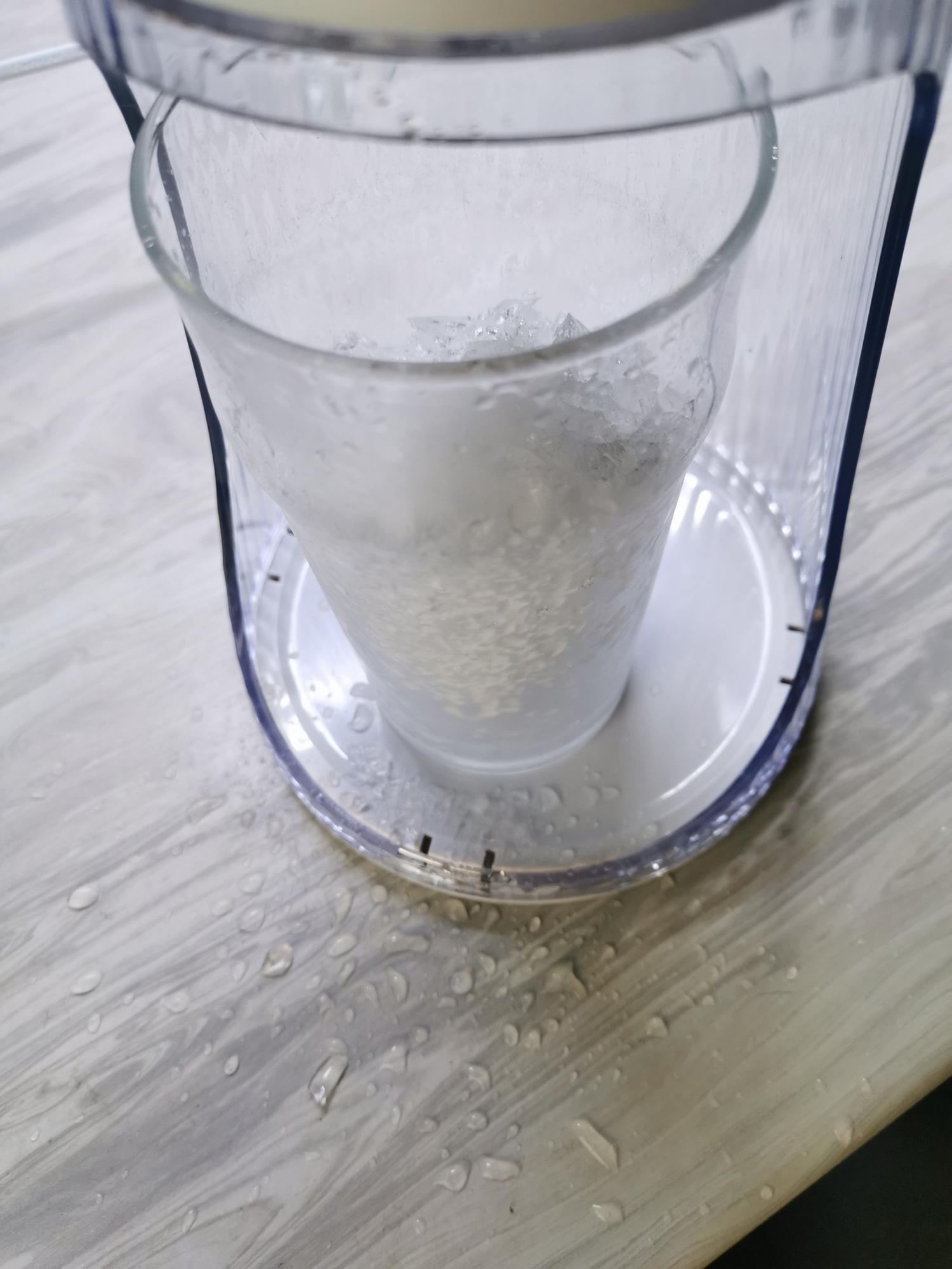 Буквально за 40 секунд и 2 захода мы получили ⅔ большого стакана с колотым льдом.