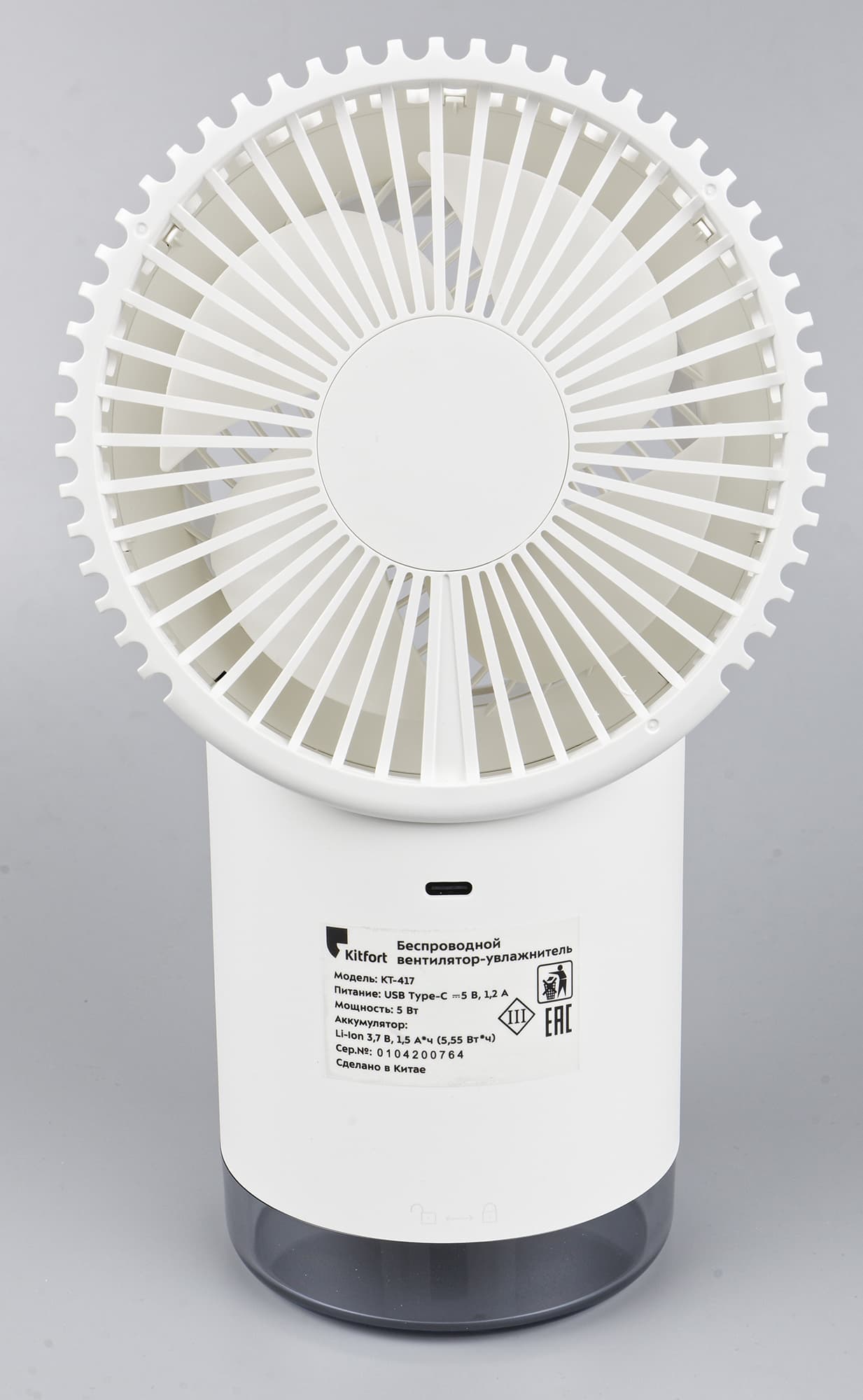 | Тип | аккумуляторный вентилятор-увлажнитель |