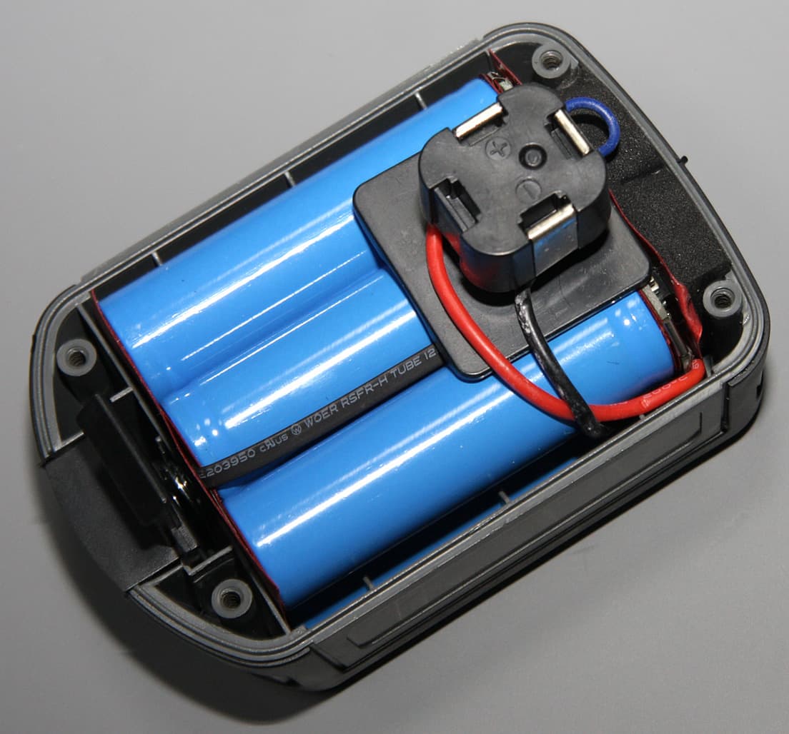 Аккумулятор легко разбирается. Составлен он из элементов популярного типоразмера 18650, поэтому в случае необходимости его без особого труда можно будет пересобрать из новых банок.
